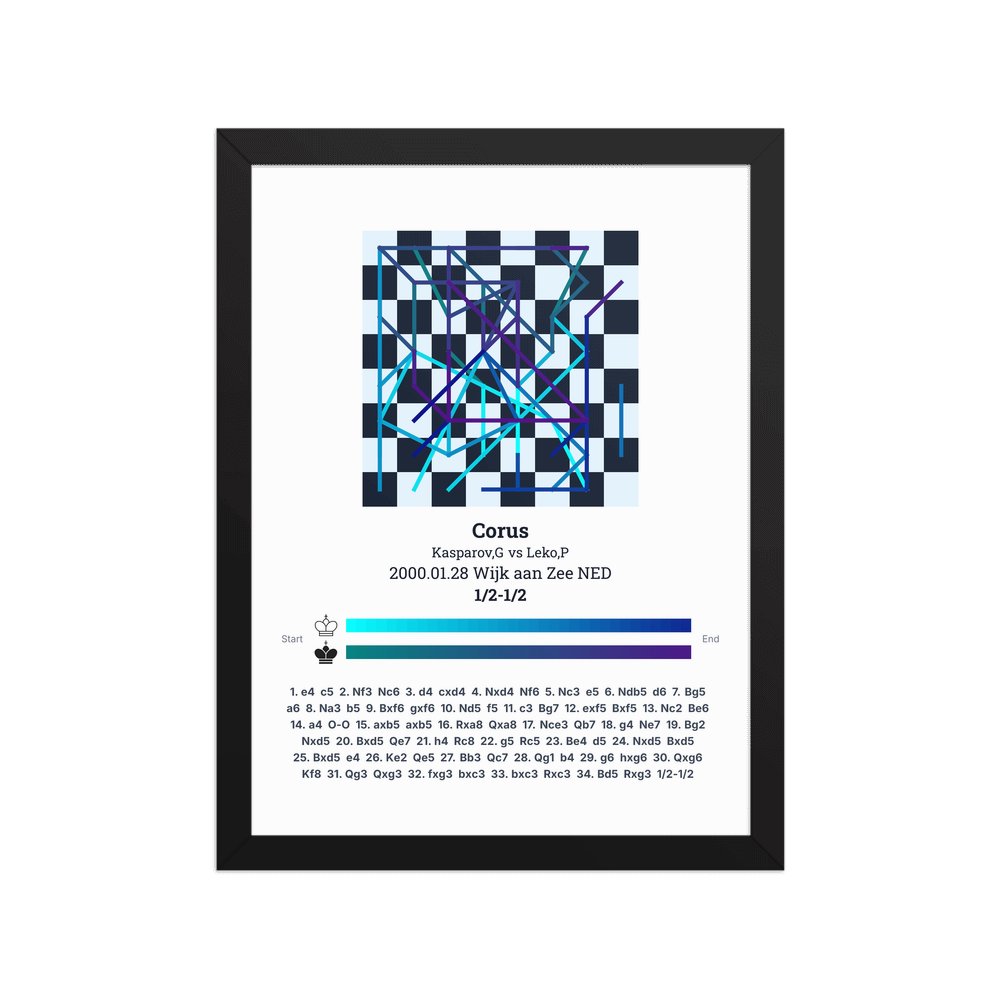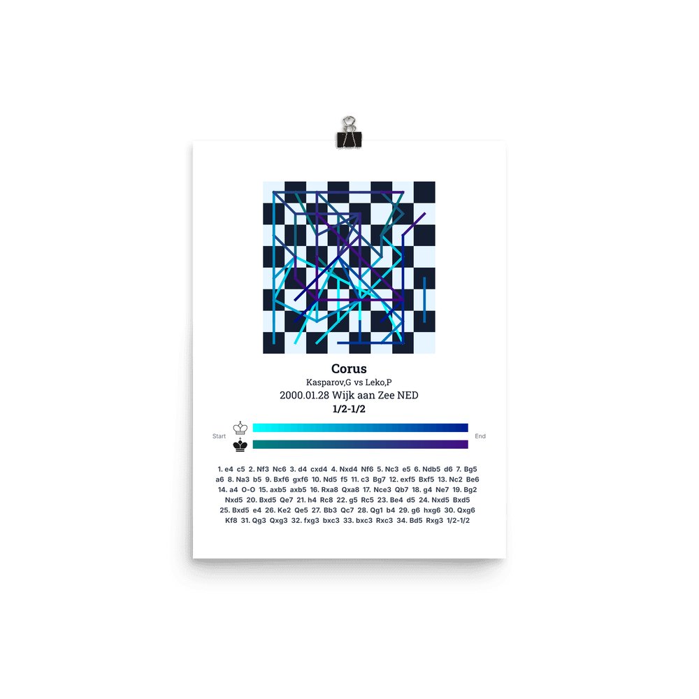 Museum-quality poster on thick, durable matte paper. A sharp, clean look for any chess visualisation.