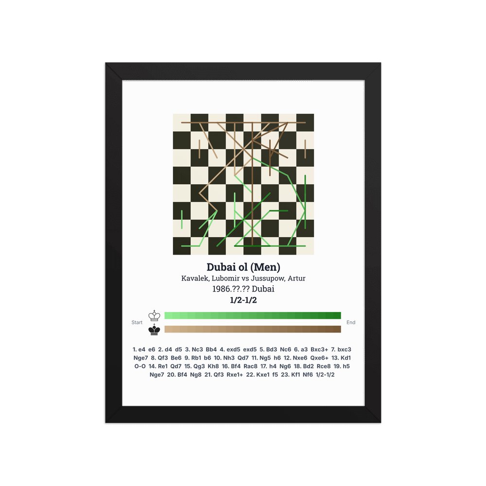 Museum-quality poster on thick, durable matte paper. A sharp, clean look for any chess visualisation.