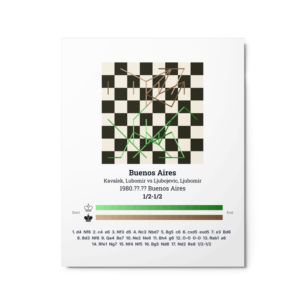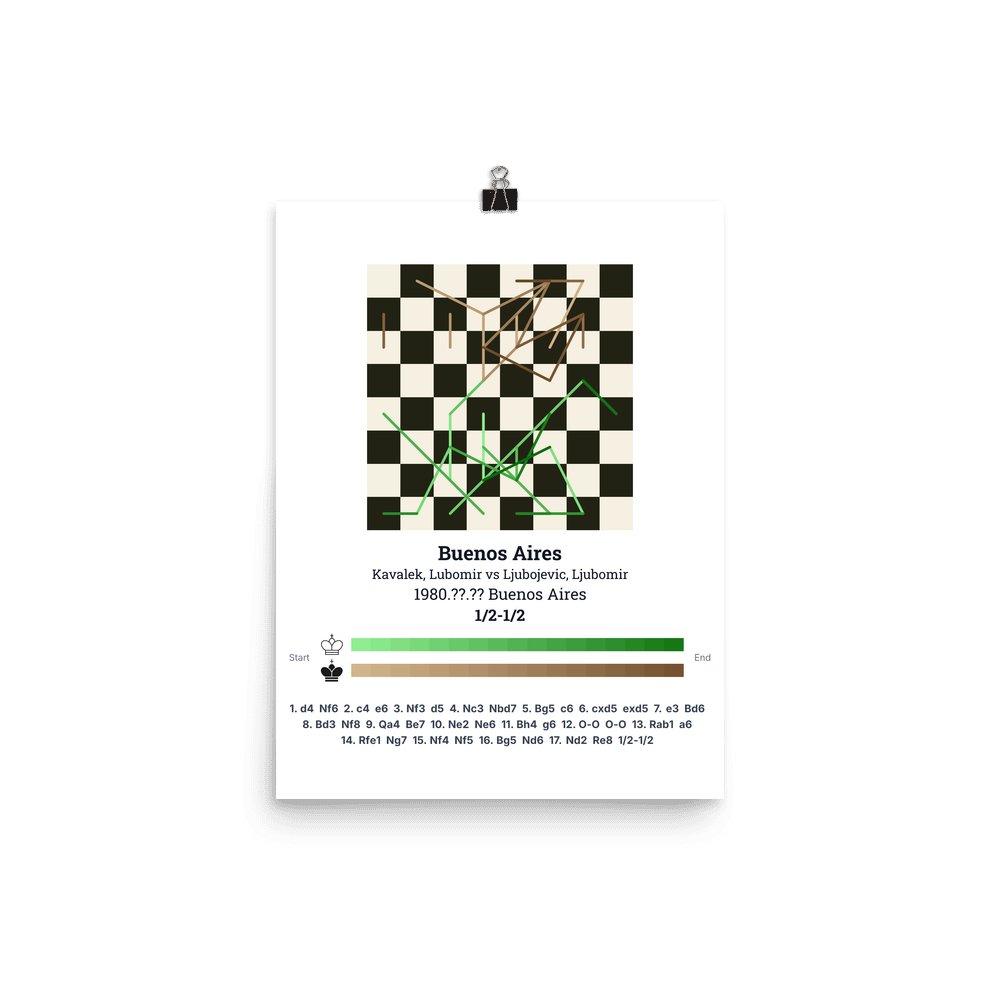 Museum-quality poster on thick, durable matte paper. A sharp, clean look for any chess visualisation.