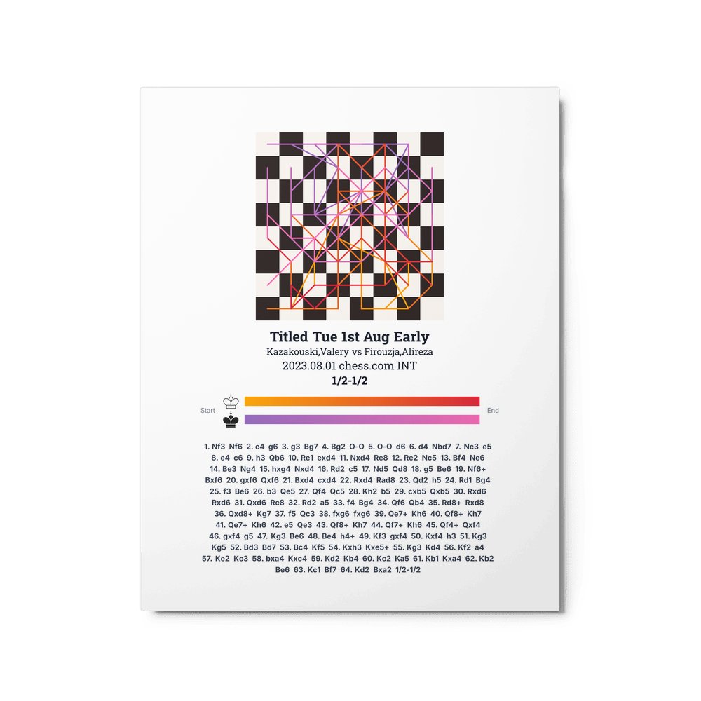 Museum-quality poster on thick, durable matte paper. A sharp, clean look for any chess visualisation.