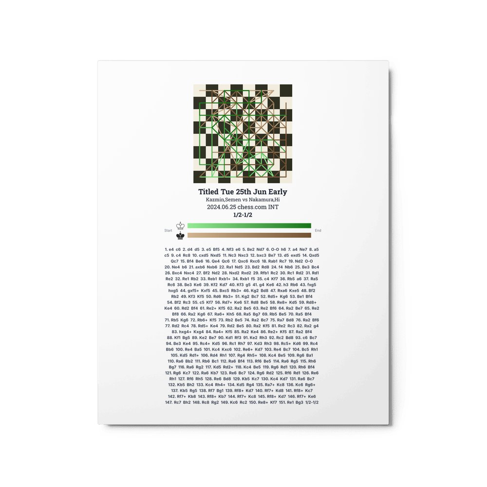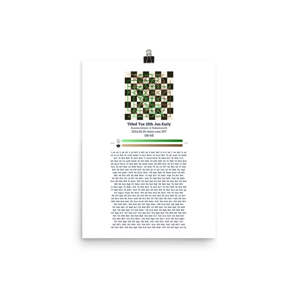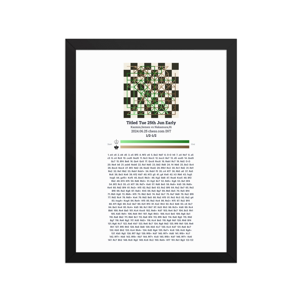 Museum-quality poster on thick, durable matte paper. A sharp, clean look for any chess visualisation.