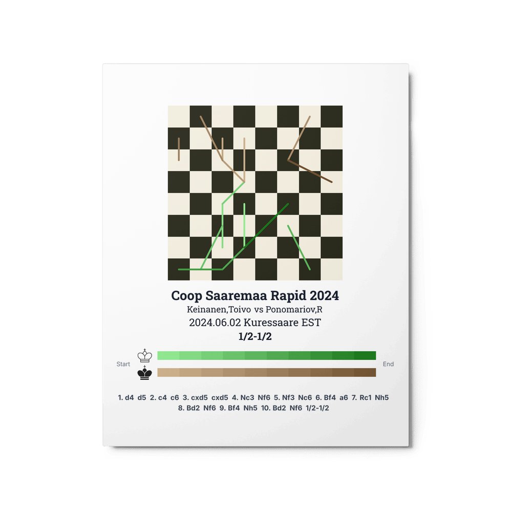 Museum-quality poster on thick, durable matte paper. A sharp, clean look for any chess visualisation.