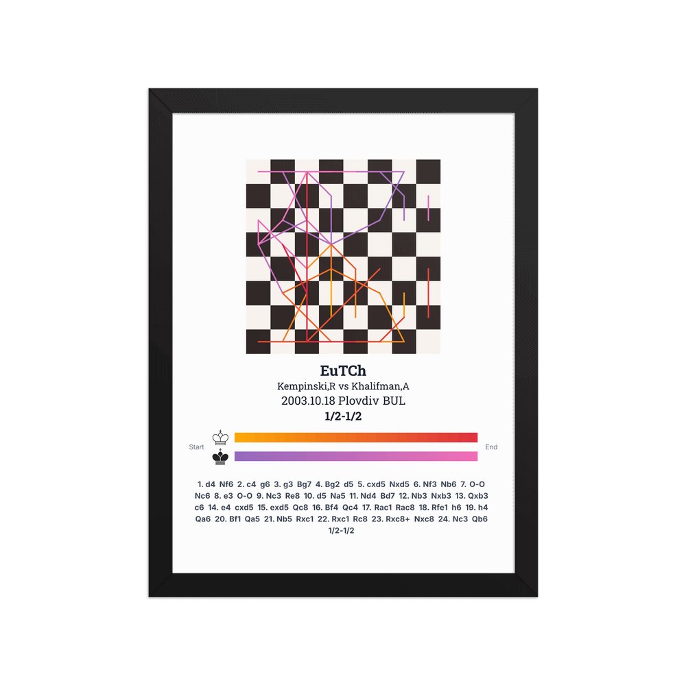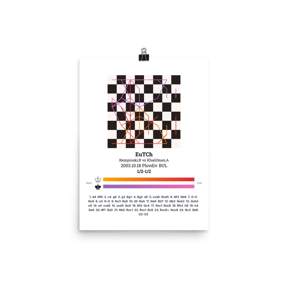 Museum-quality poster on thick, durable matte paper. A sharp, clean look for any chess visualisation.