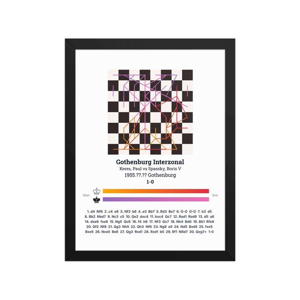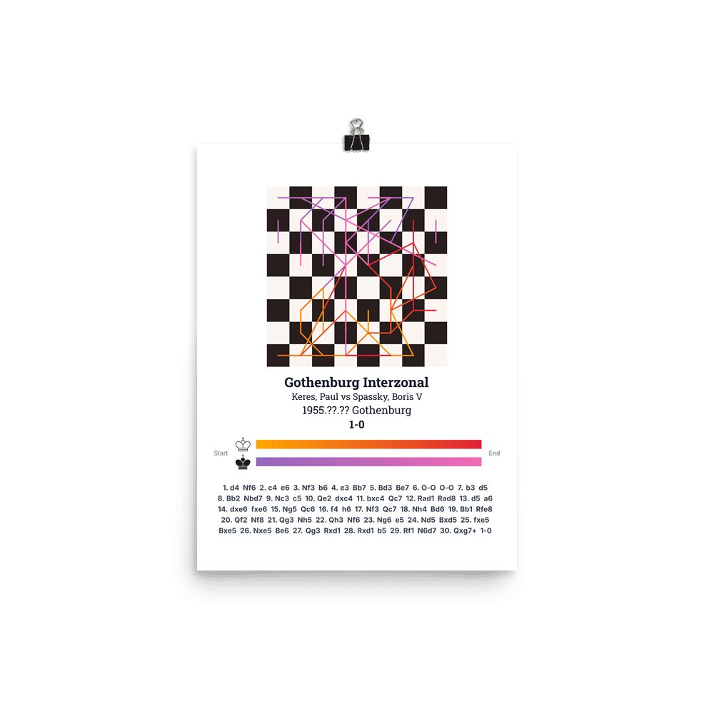 Gothenburg 1955. The experienced Paul Keres faced a young Boris Spassky in a game that hinted at the latter's future greatness. Spassky would go on to become the 10th World Champion — a universal player equally brilliant in attack and defence.