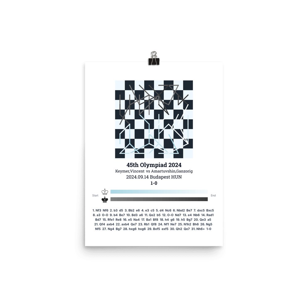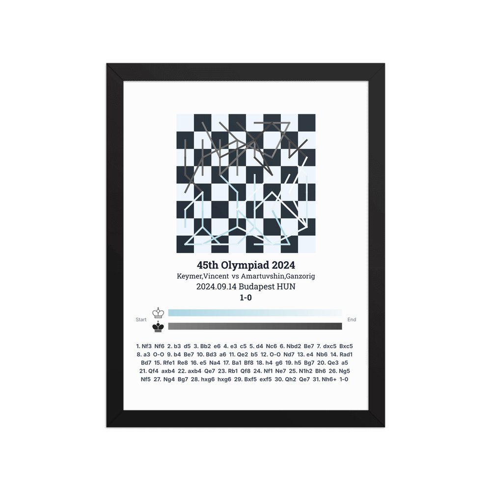 Museum-quality poster on thick, durable matte paper. A sharp, clean look for any chess visualisation.