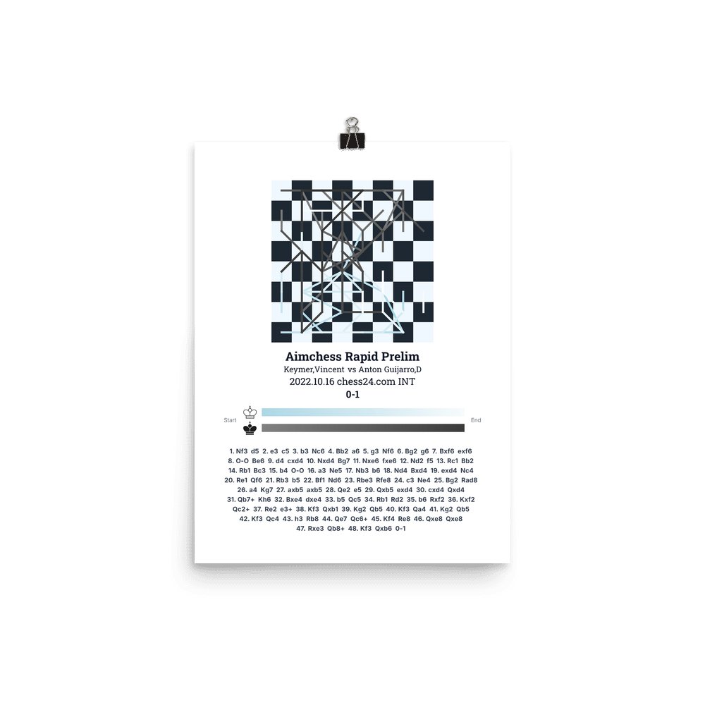 Museum-quality poster on thick, durable matte paper. A sharp, clean look for any chess visualisation.