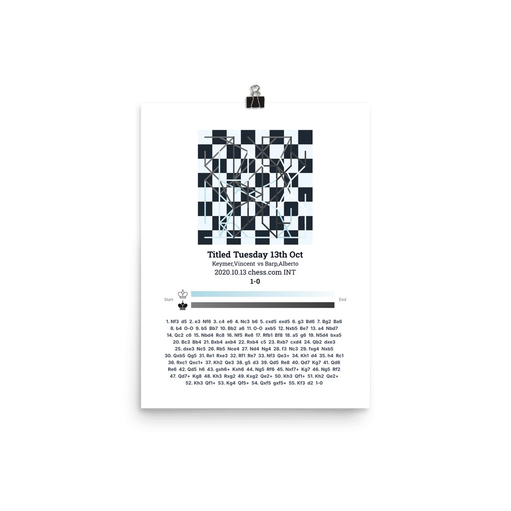 Museum-quality poster on thick, durable matte paper. A sharp, clean look for any chess visualisation.