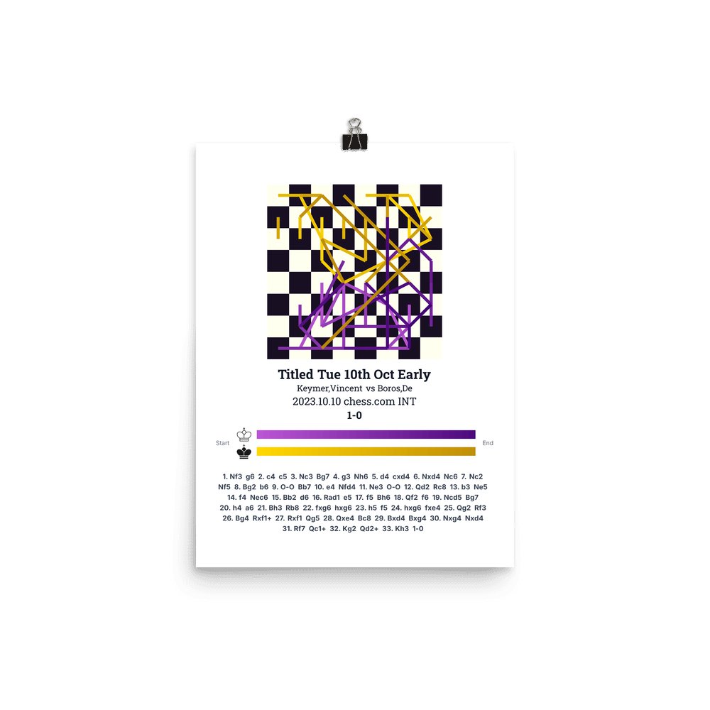 Museum-quality poster on thick, durable matte paper. A sharp, clean look for any chess visualisation.