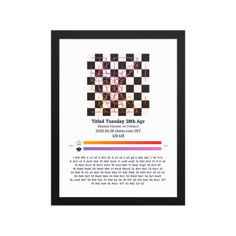 Museum-quality poster on thick, durable matte paper. A sharp, clean look for any chess visualisation.