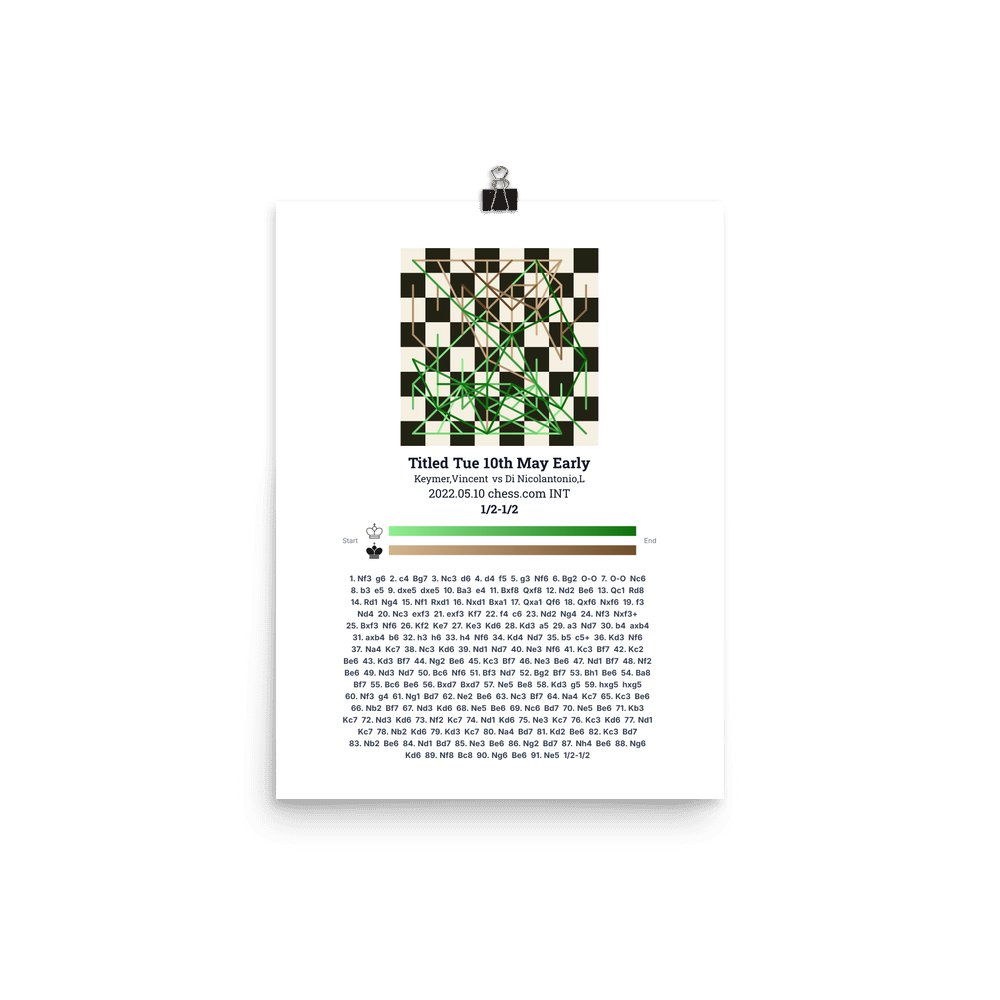 Museum-quality poster on thick, durable matte paper. A sharp, clean look for any chess visualisation.