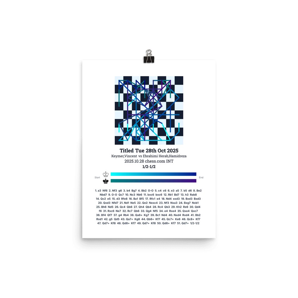Museum-quality poster on thick, durable matte paper. A sharp, clean look for any chess visualisation.
