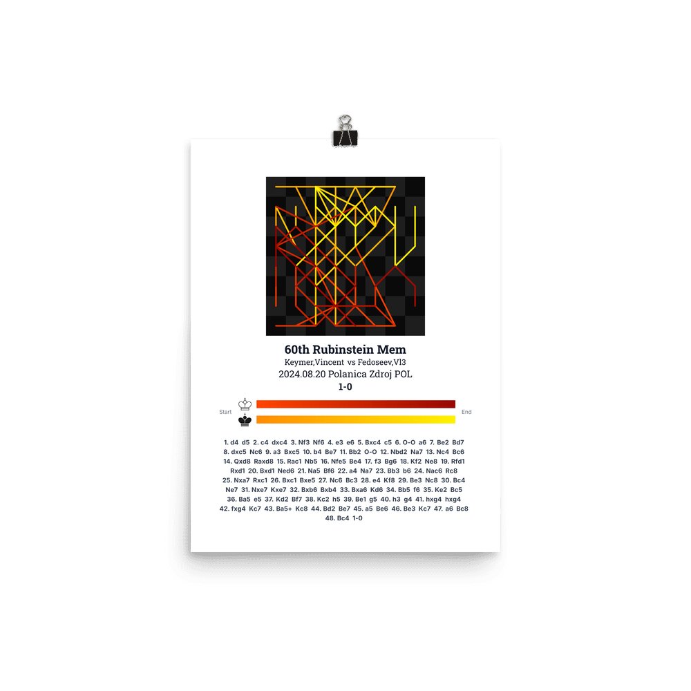 Museum-quality poster on thick, durable matte paper. A sharp, clean look for any chess visualisation.