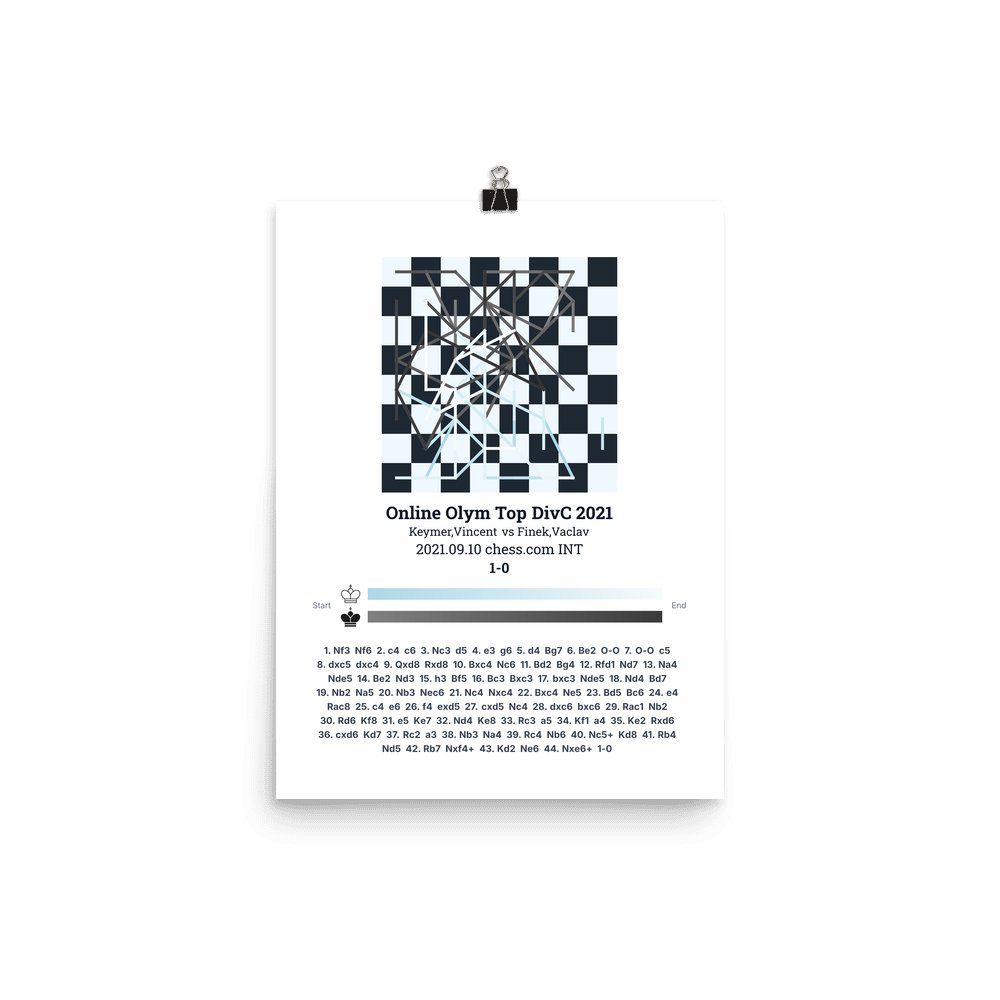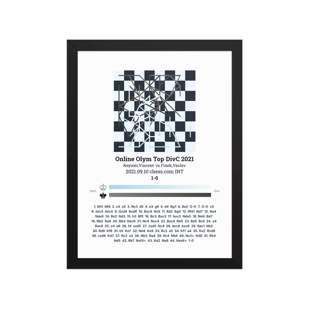 Museum-quality poster on thick, durable matte paper. A sharp, clean look for any chess visualisation.