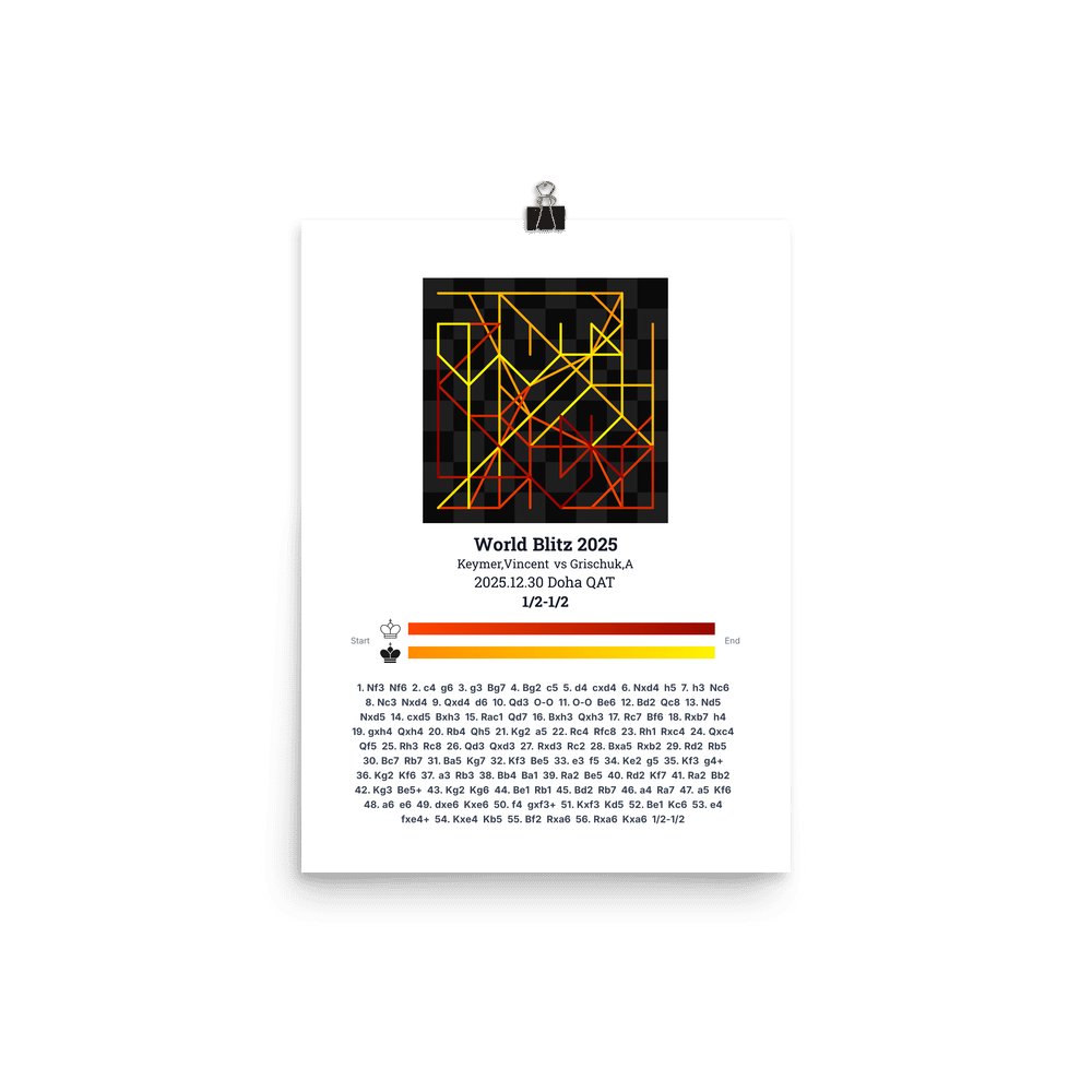 Museum-quality poster on thick, durable matte paper. A sharp, clean look for any chess visualisation.