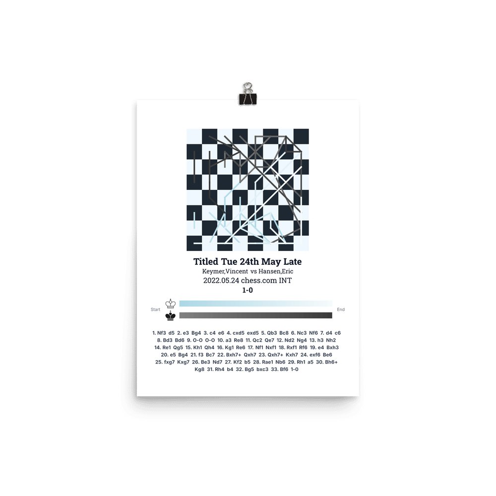 Museum-quality poster on thick, durable matte paper. A sharp, clean look for any chess visualisation.