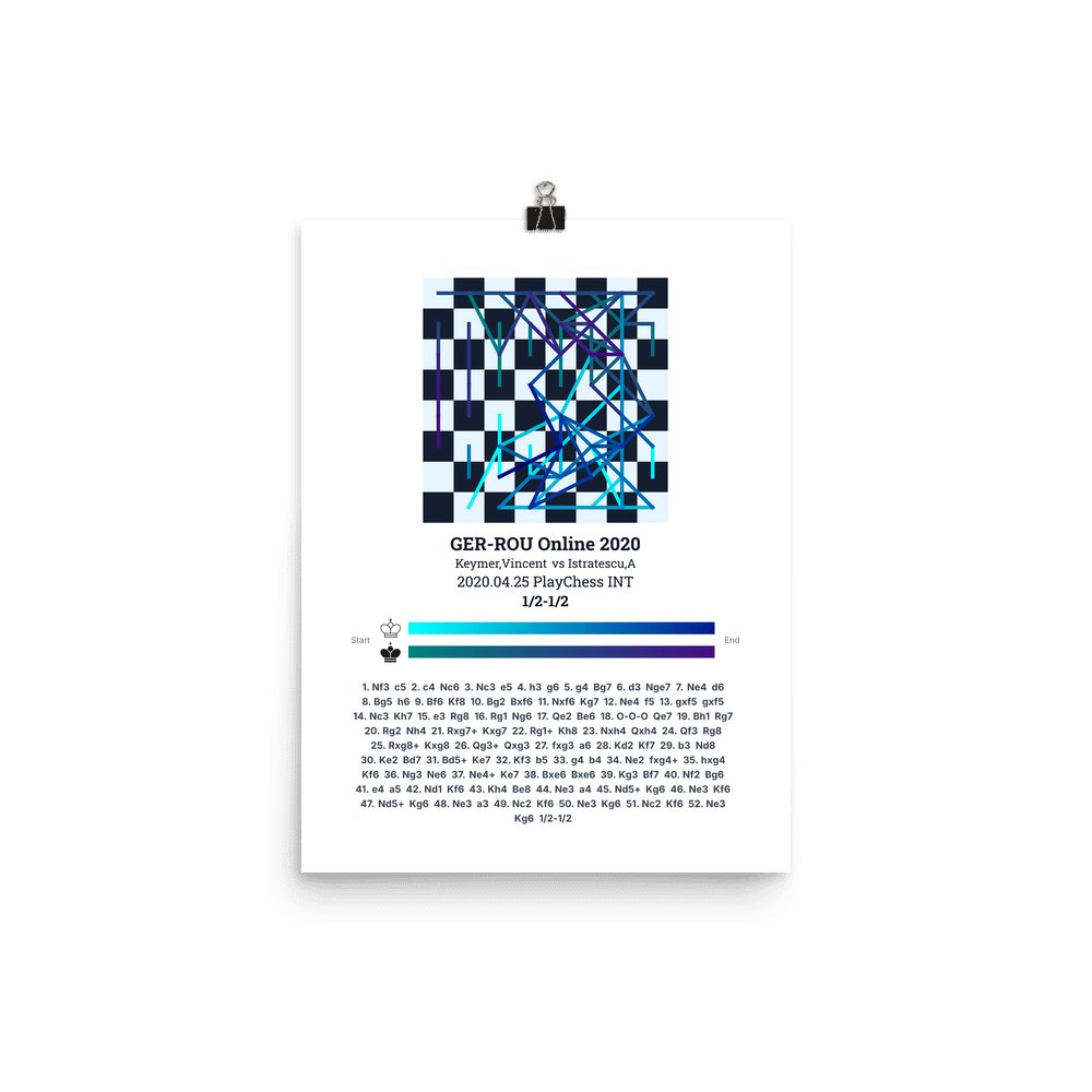 Museum-quality poster on thick, durable matte paper. A sharp, clean look for any chess visualisation.