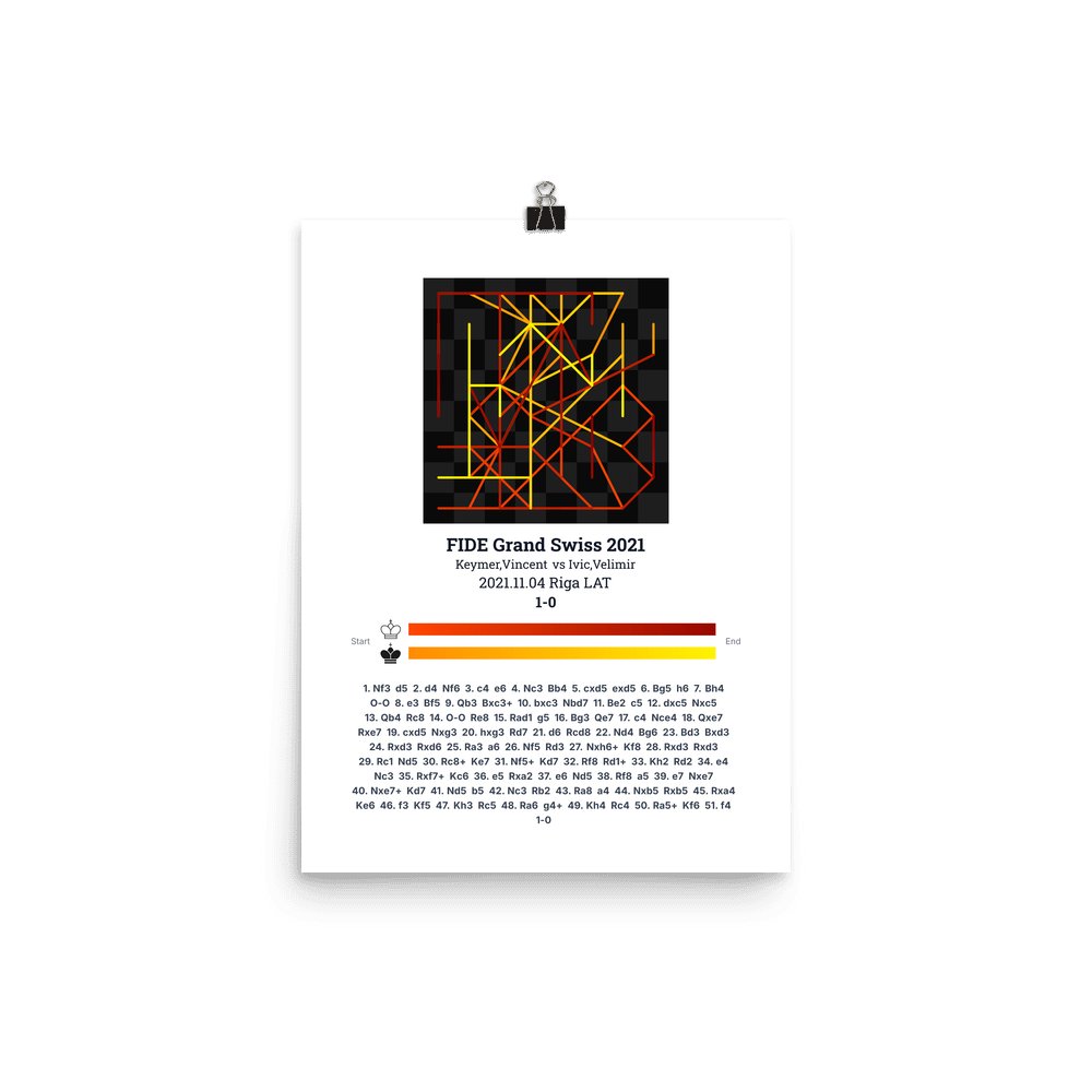 Museum-quality poster on thick, durable matte paper. A sharp, clean look for any chess visualisation.