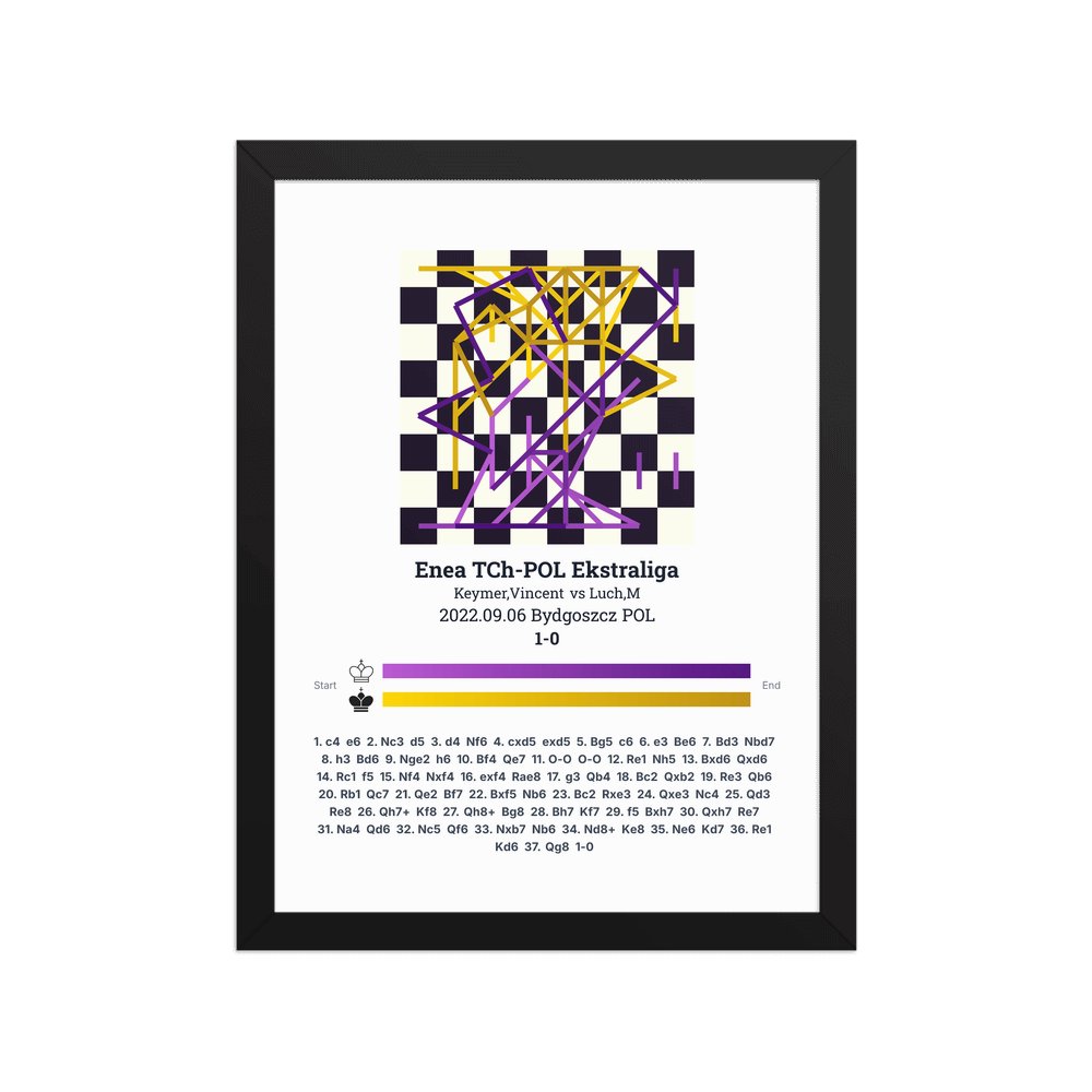 Museum-quality poster on thick, durable matte paper. A sharp, clean look for any chess visualisation.