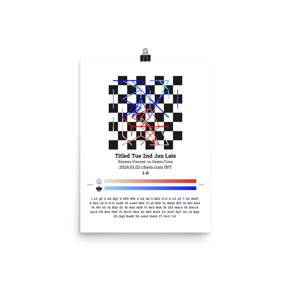 Museum-quality poster on thick, durable matte paper. A sharp, clean look for any chess visualisation.