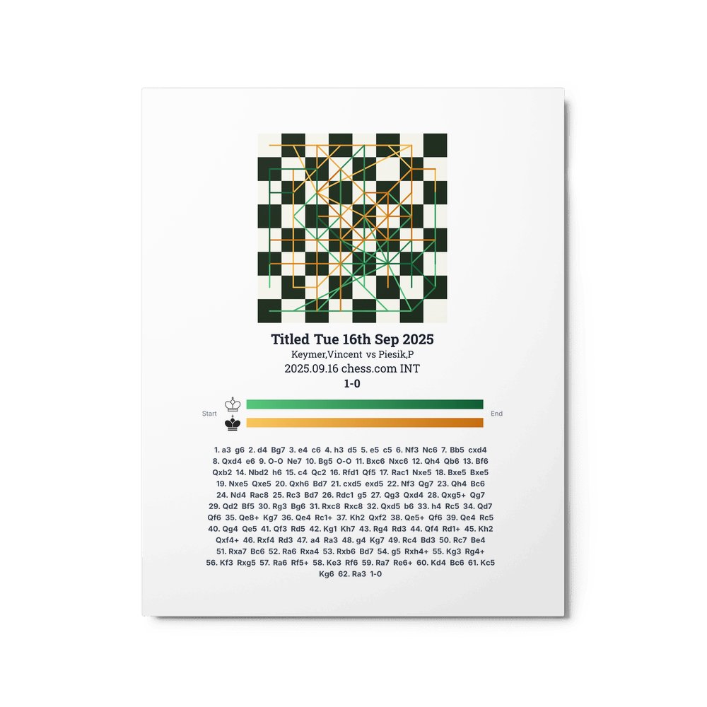 Museum-quality poster on thick, durable matte paper. A sharp, clean look for any chess visualisation.