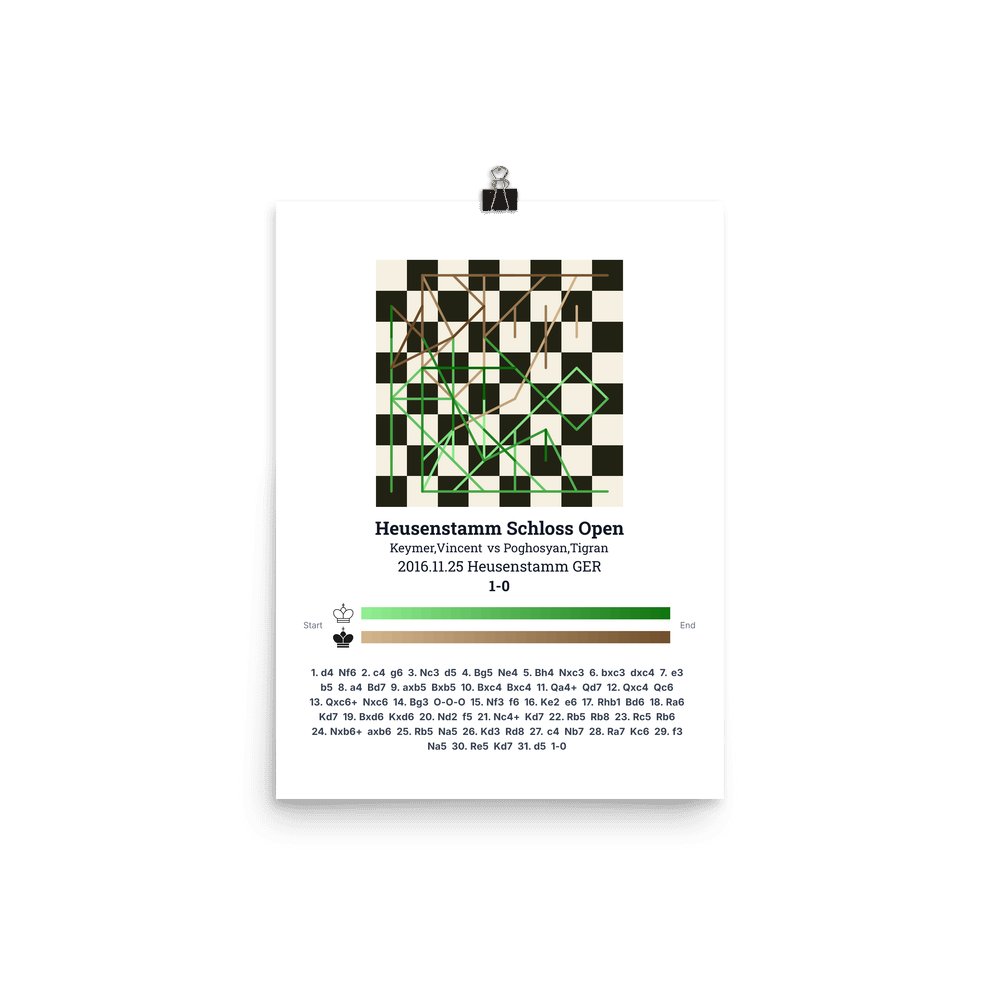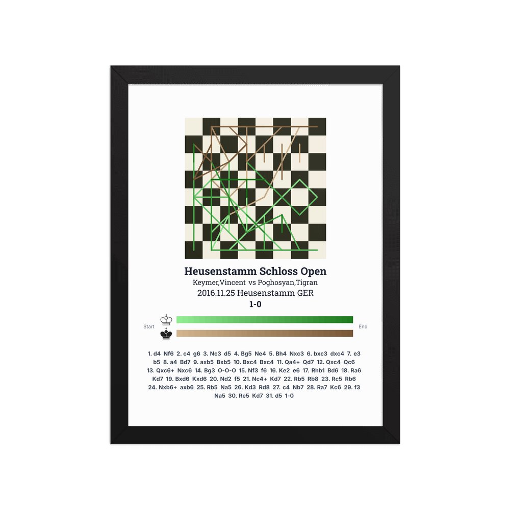 Museum-quality poster on thick, durable matte paper. A sharp, clean look for any chess visualisation.