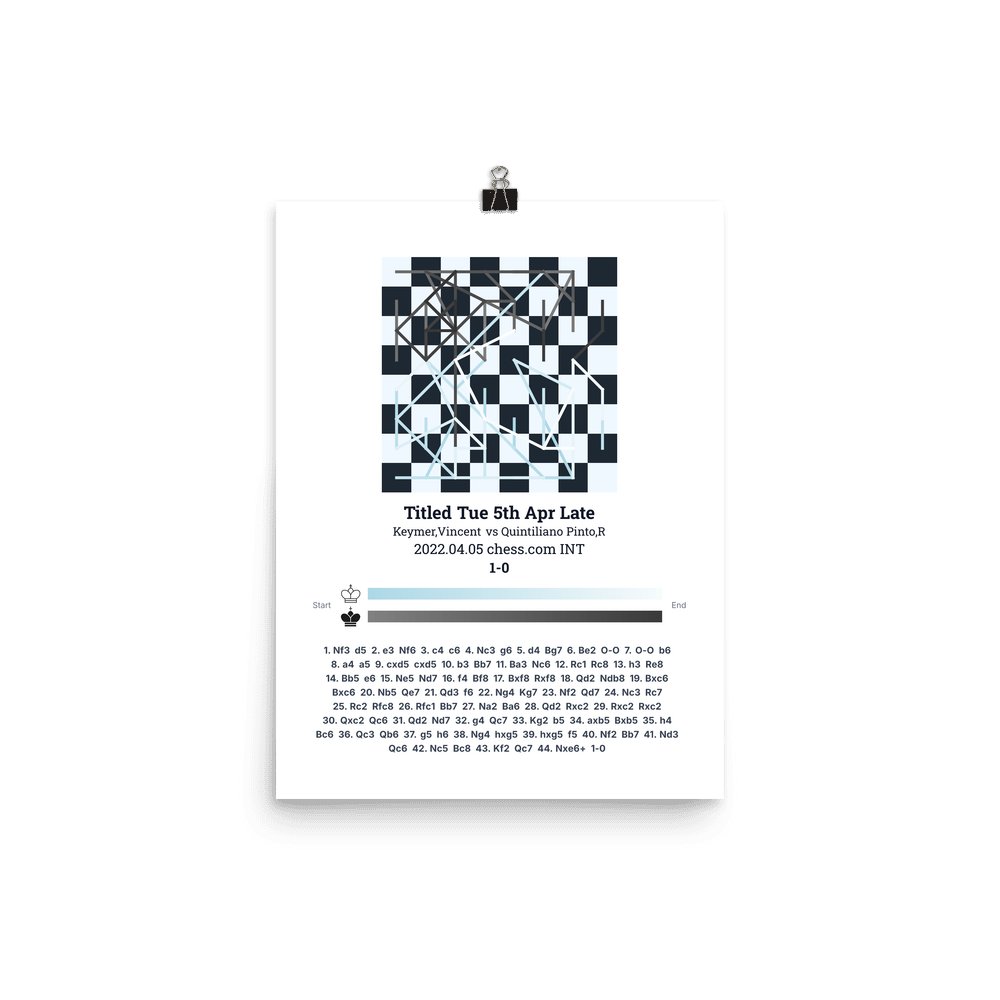 Museum-quality poster on thick, durable matte paper. A sharp, clean look for any chess visualisation.