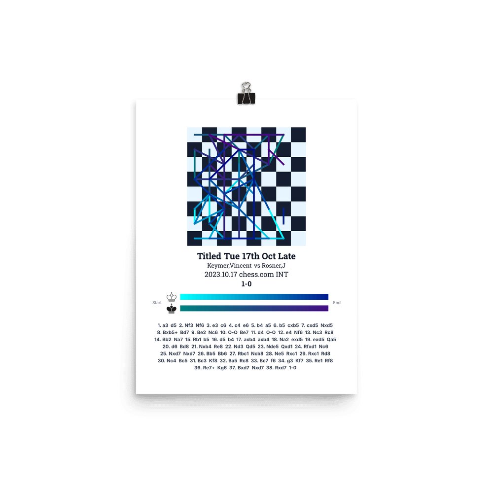 Museum-quality poster on thick, durable matte paper. A sharp, clean look for any chess visualisation.