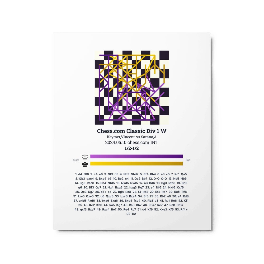 Museum-quality poster on thick, durable matte paper. A sharp, clean look for any chess visualisation.