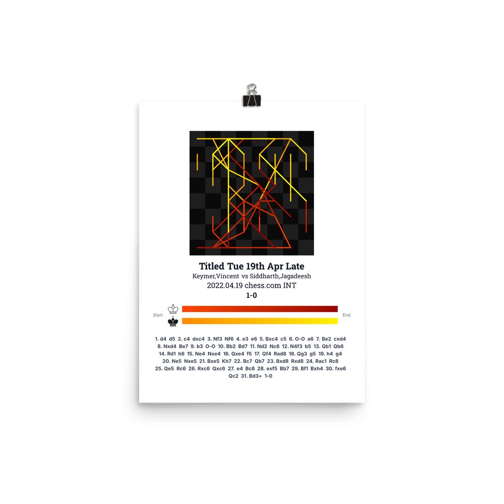 Museum-quality poster on thick, durable matte paper. A sharp, clean look for any chess visualisation.