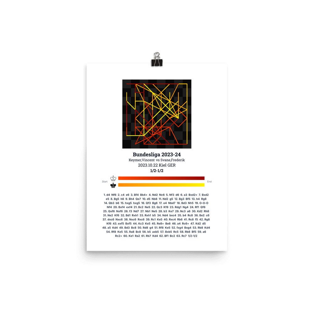 Museum-quality poster on thick, durable matte paper. A sharp, clean look for any chess visualisation.
