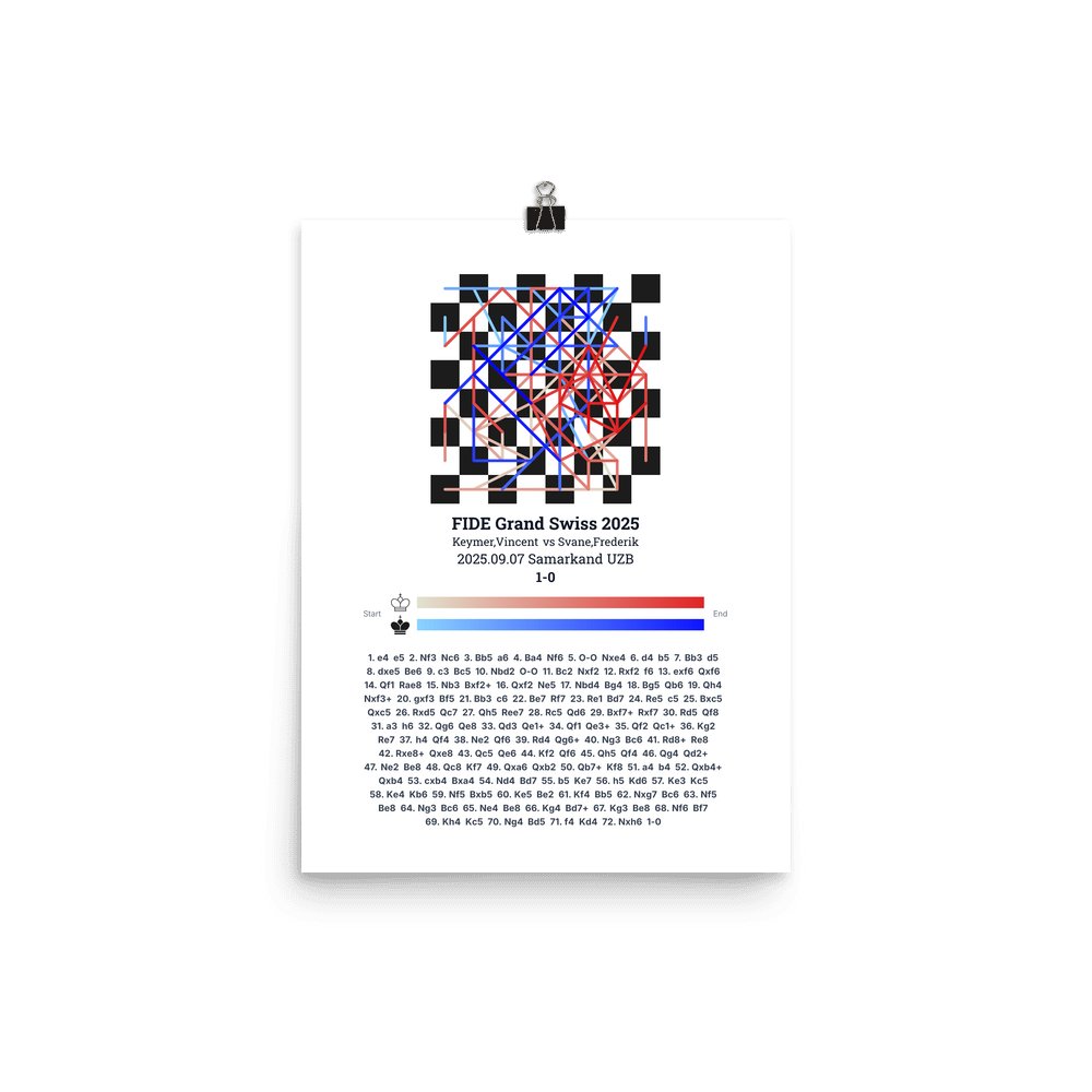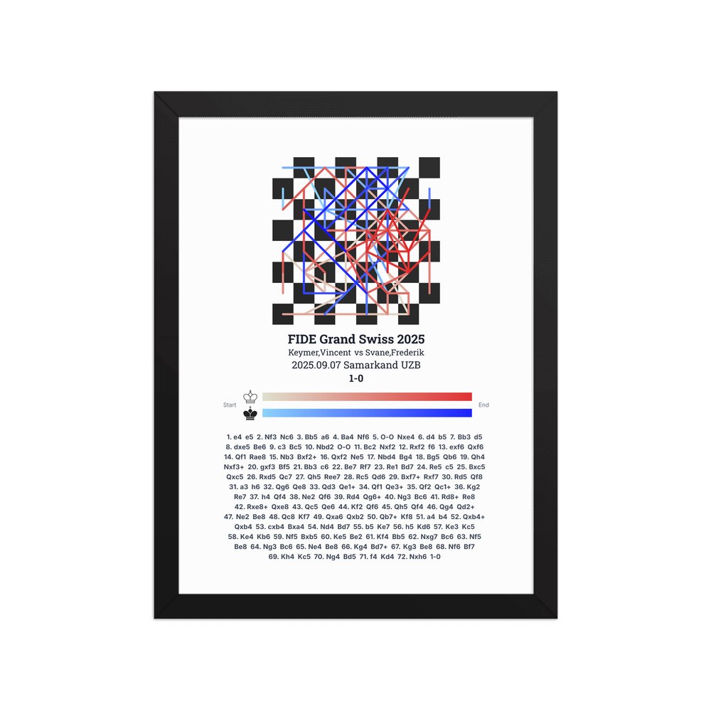 Museum-quality poster on thick, durable matte paper. A sharp, clean look for any chess visualisation.