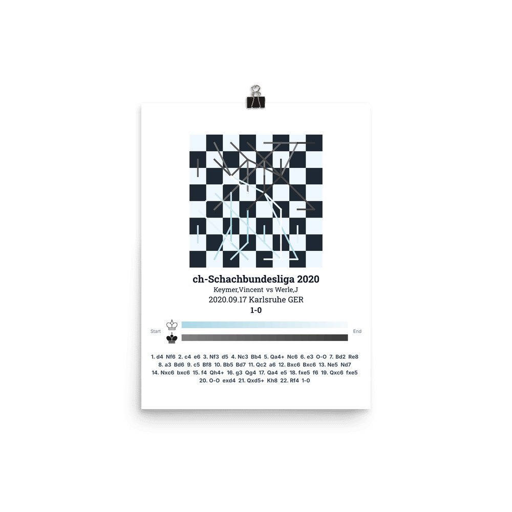 Museum-quality poster on thick, durable matte paper. A sharp, clean look for any chess visualisation.