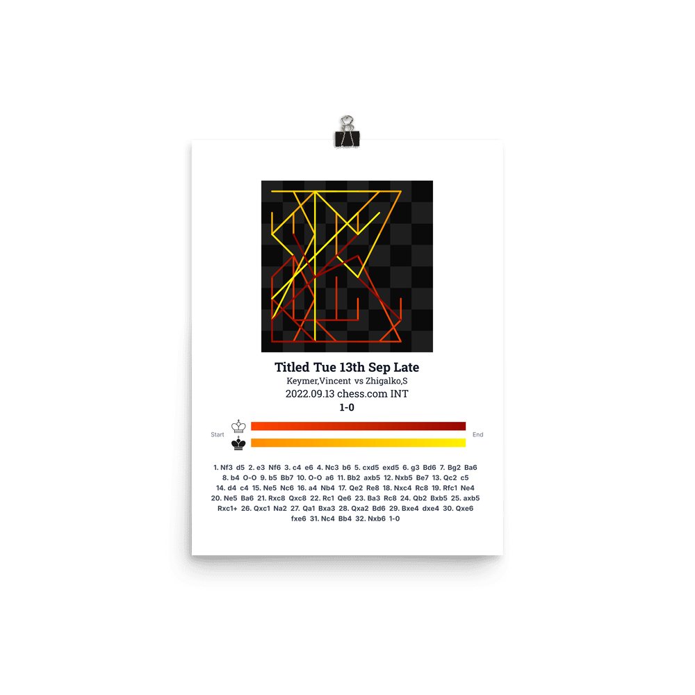 Museum-quality poster on thick, durable matte paper. A sharp, clean look for any chess visualisation.