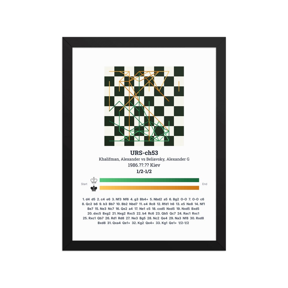 Museum-quality poster on thick, durable matte paper. A sharp, clean look for any chess visualisation.