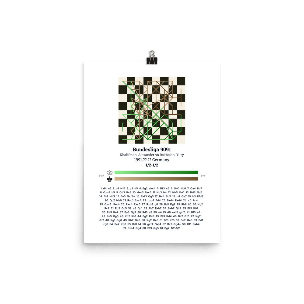 Museum-quality poster on thick, durable matte paper. A sharp, clean look for any chess visualisation.