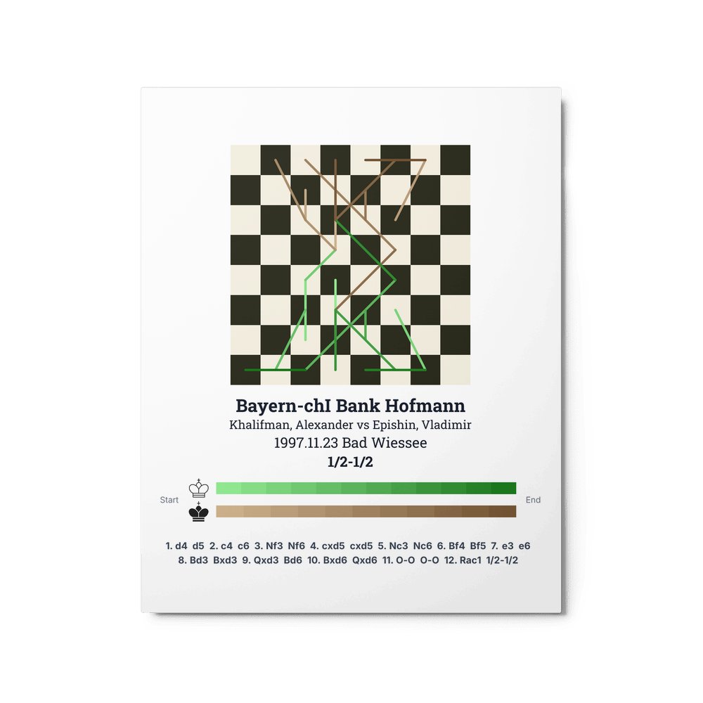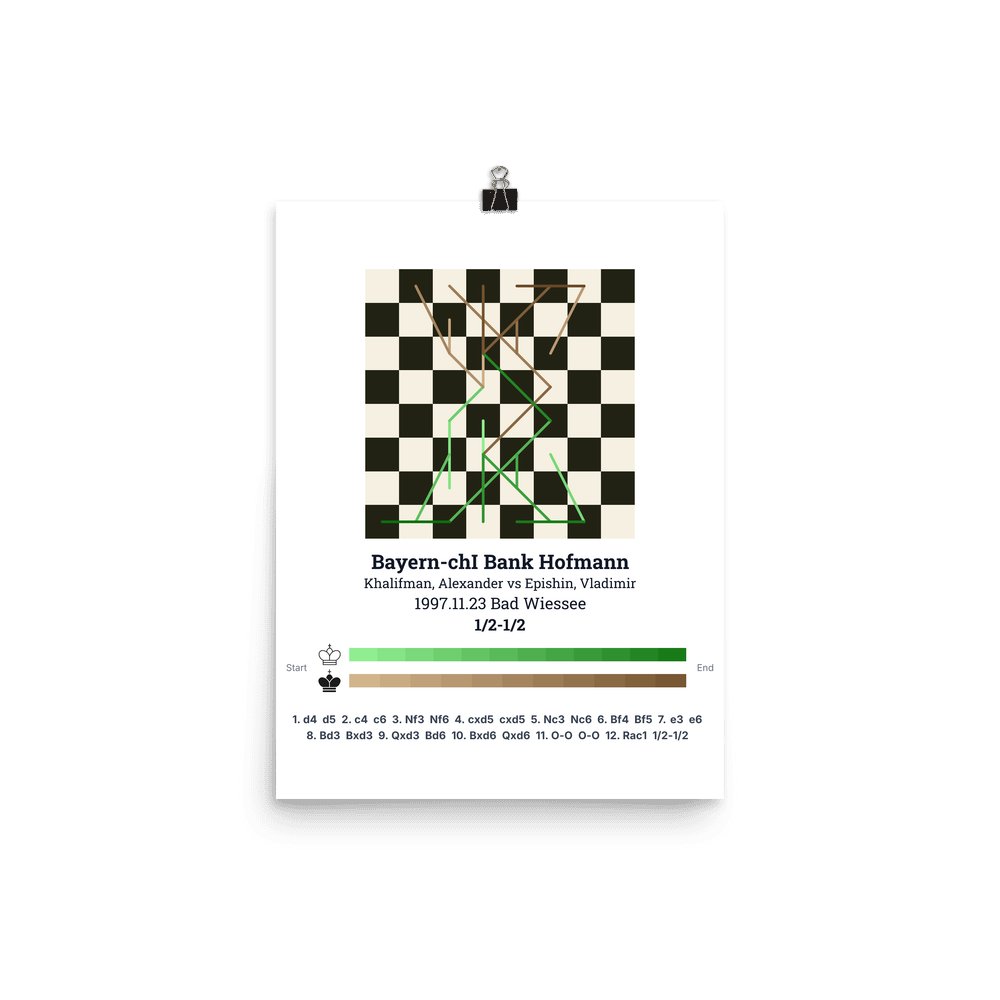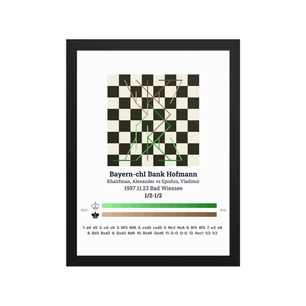 Museum-quality poster on thick, durable matte paper. A sharp, clean look for any chess visualisation.