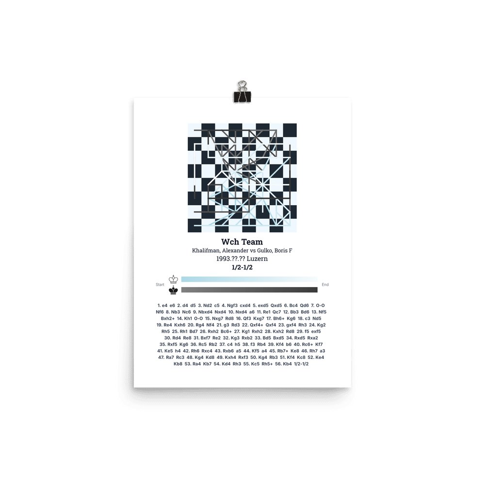 Museum-quality poster on thick, durable matte paper. A sharp, clean look for any chess visualisation.