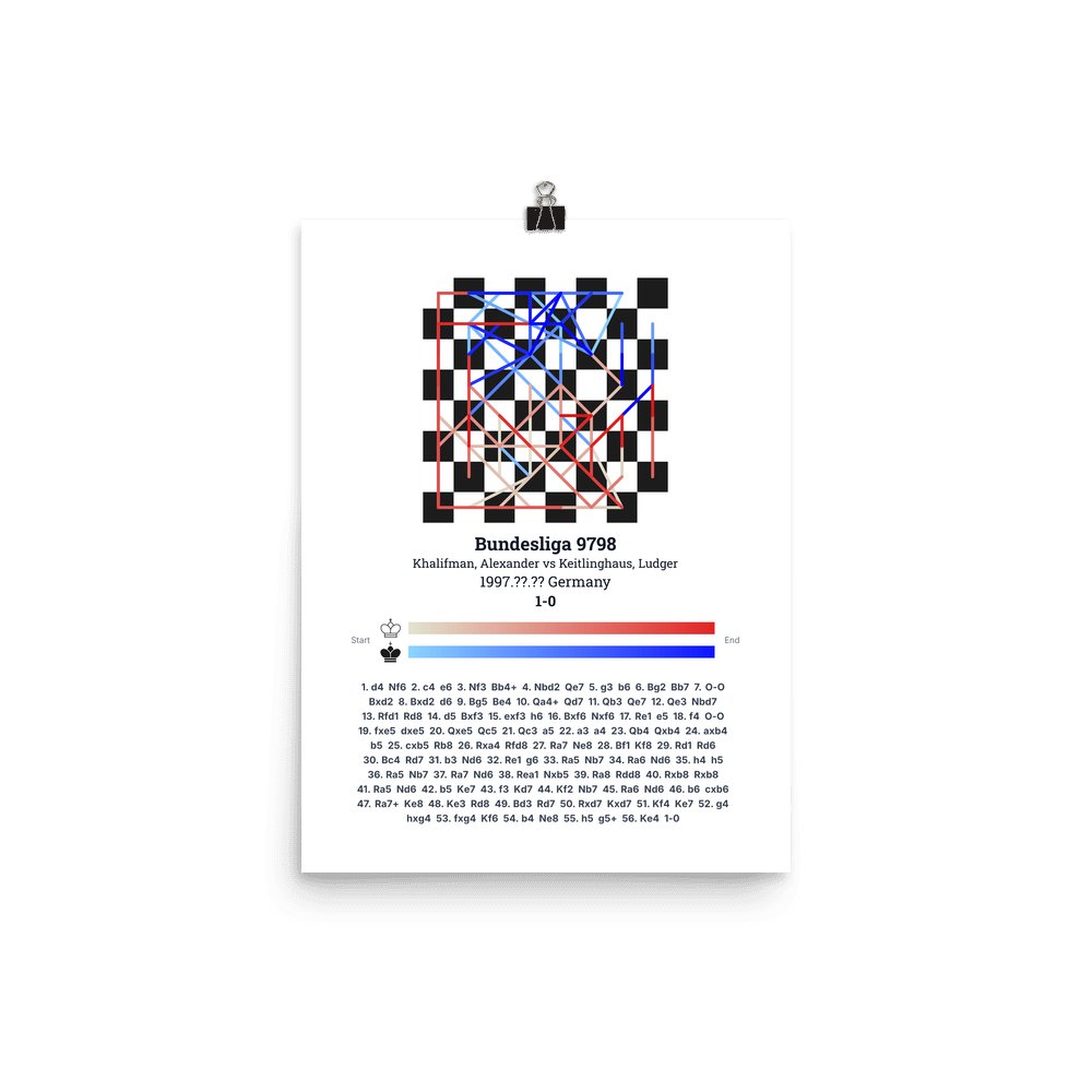 Museum-quality poster on thick, durable matte paper. A sharp, clean look for any chess visualisation.