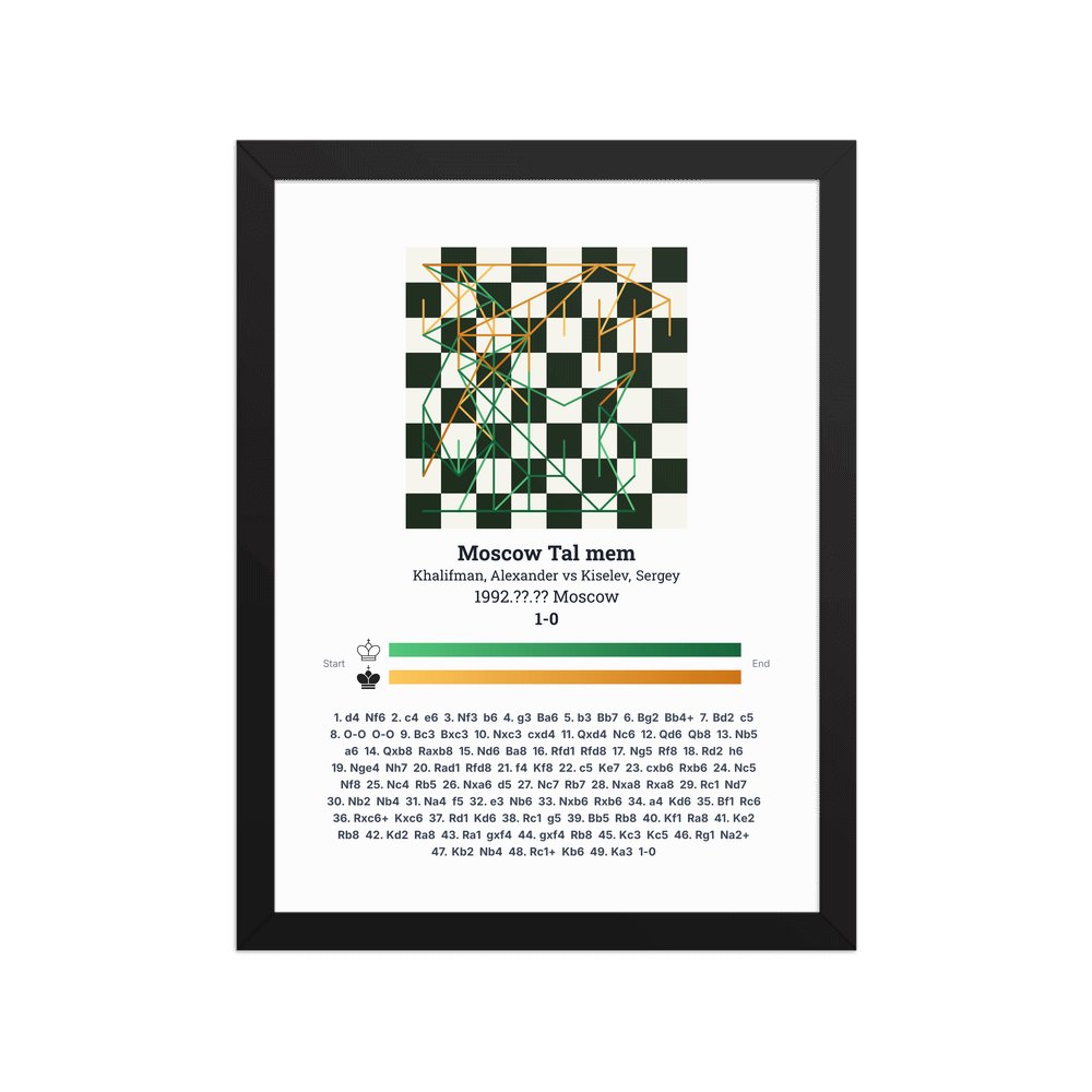 Museum-quality poster on thick, durable matte paper. A sharp, clean look for any chess visualisation.