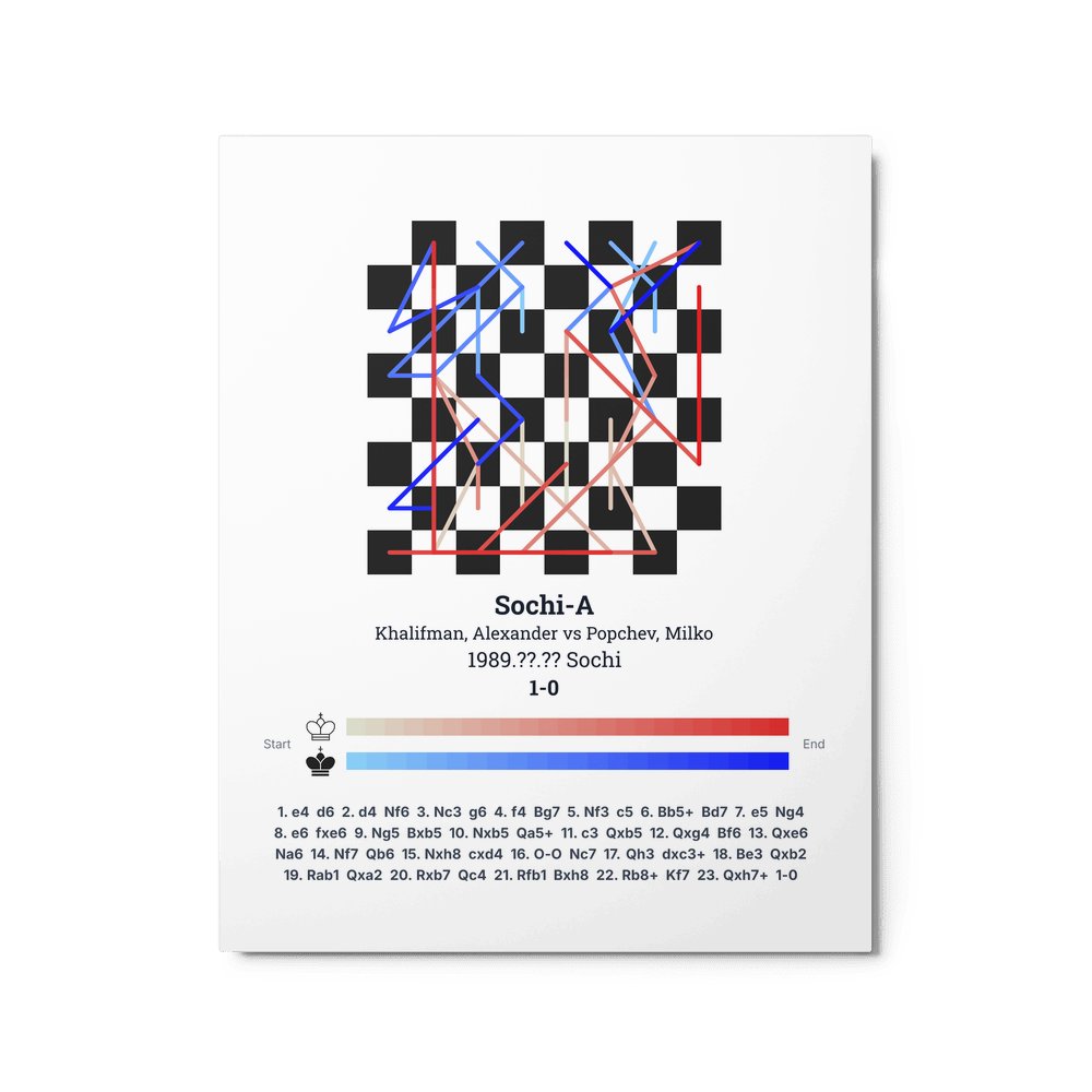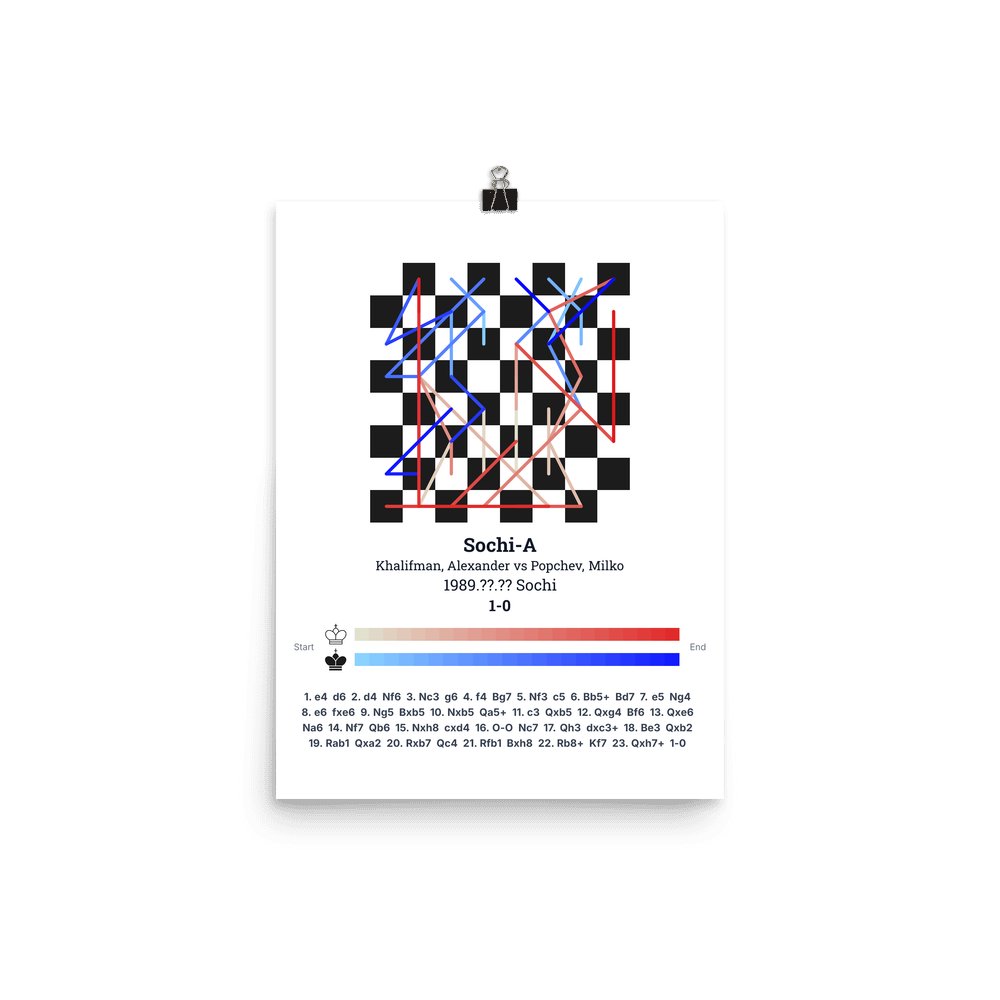Museum-quality poster on thick, durable matte paper. A sharp, clean look for any chess visualisation.