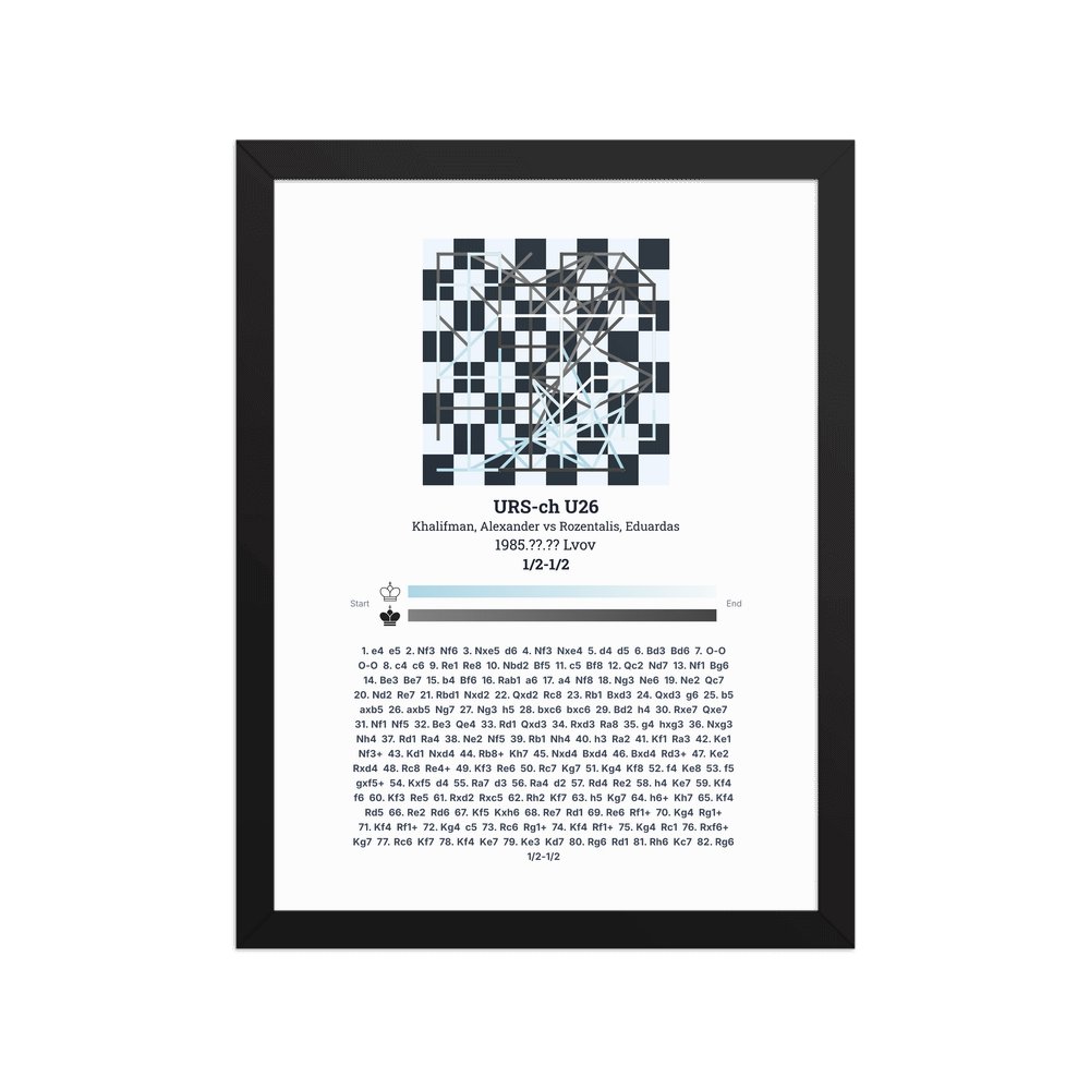 Museum-quality poster on thick, durable matte paper. A sharp, clean look for any chess visualisation.