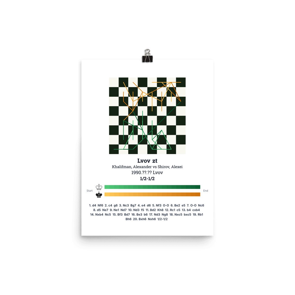 Museum-quality poster on thick, durable matte paper. A sharp, clean look for any chess visualisation.