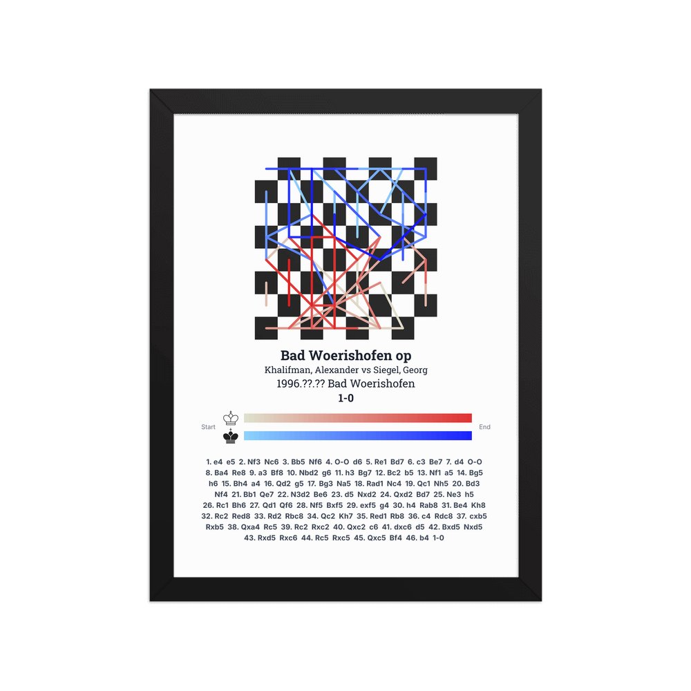 Museum-quality poster on thick, durable matte paper. A sharp, clean look for any chess visualisation.