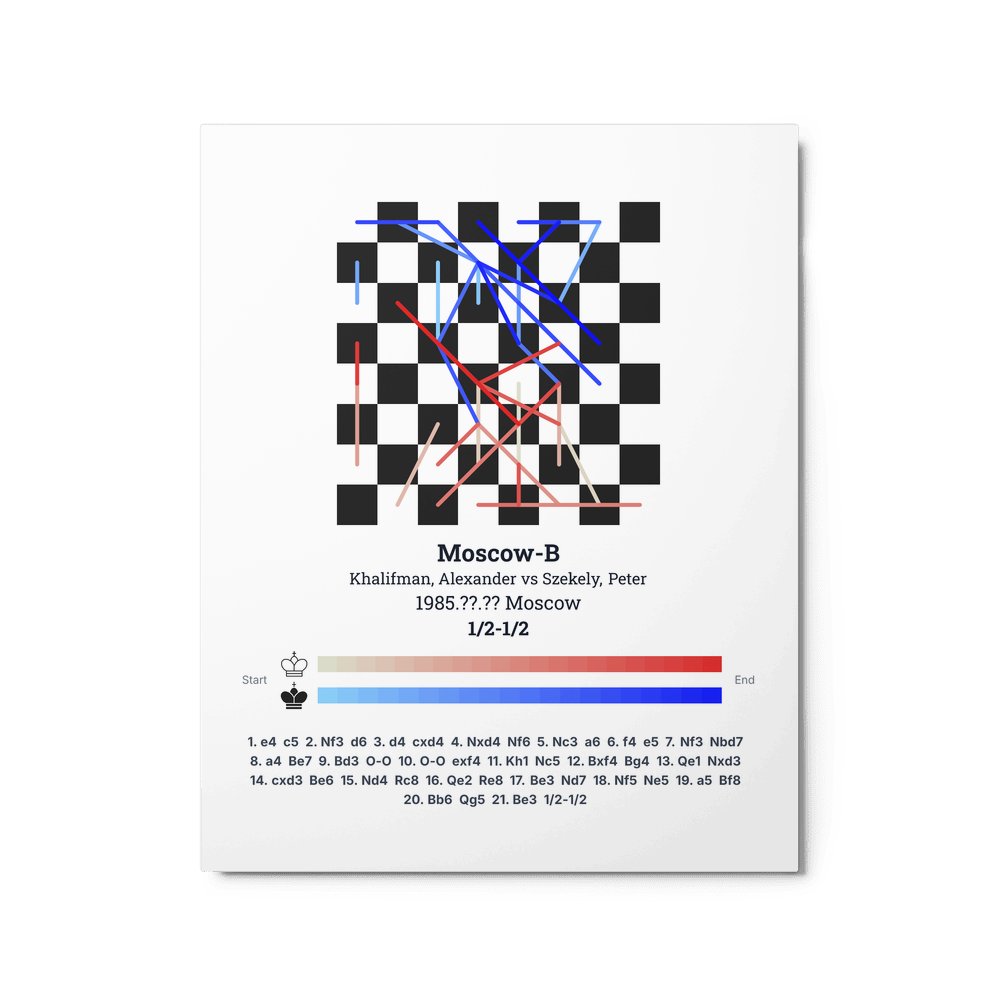 Museum-quality poster on thick, durable matte paper. A sharp, clean look for any chess visualisation.