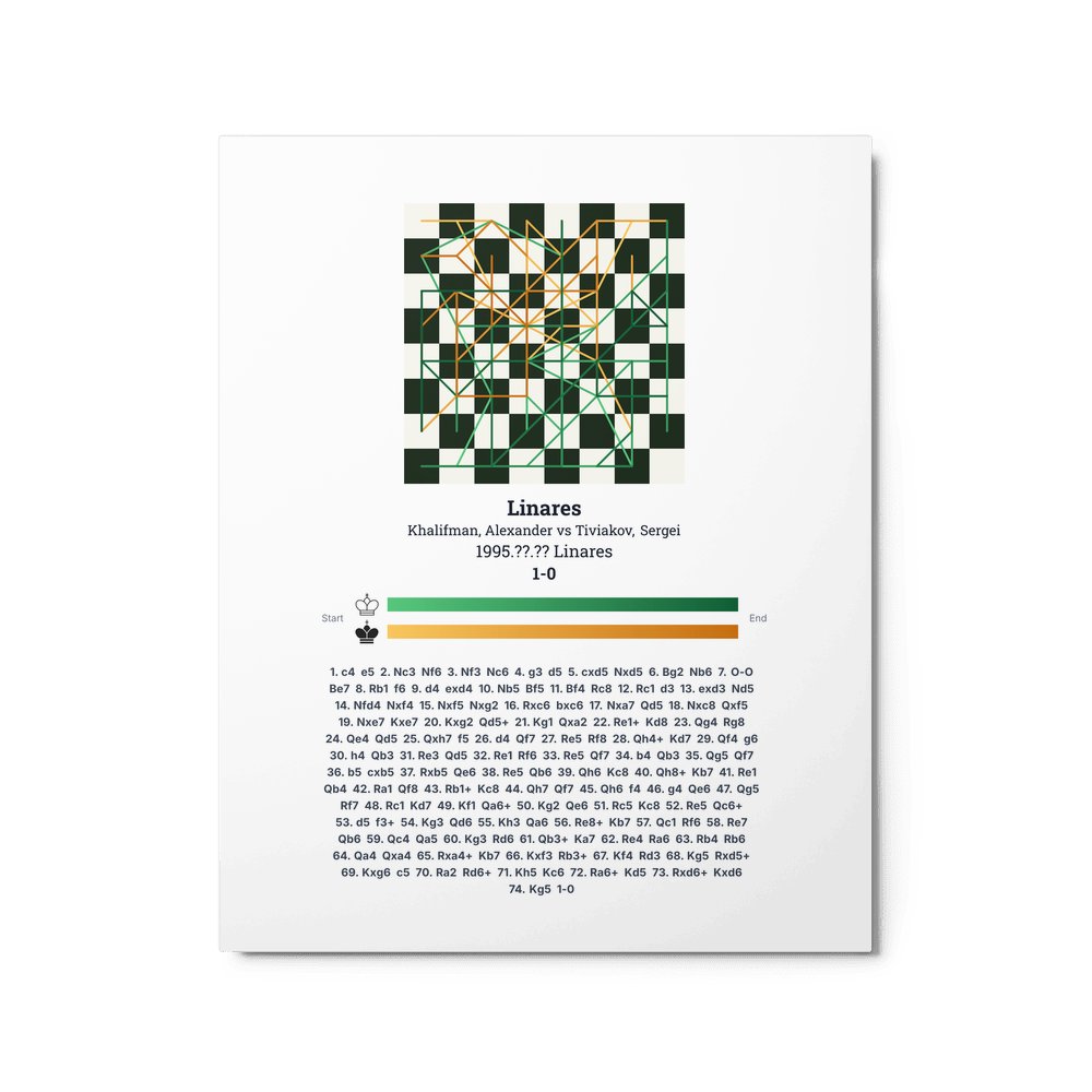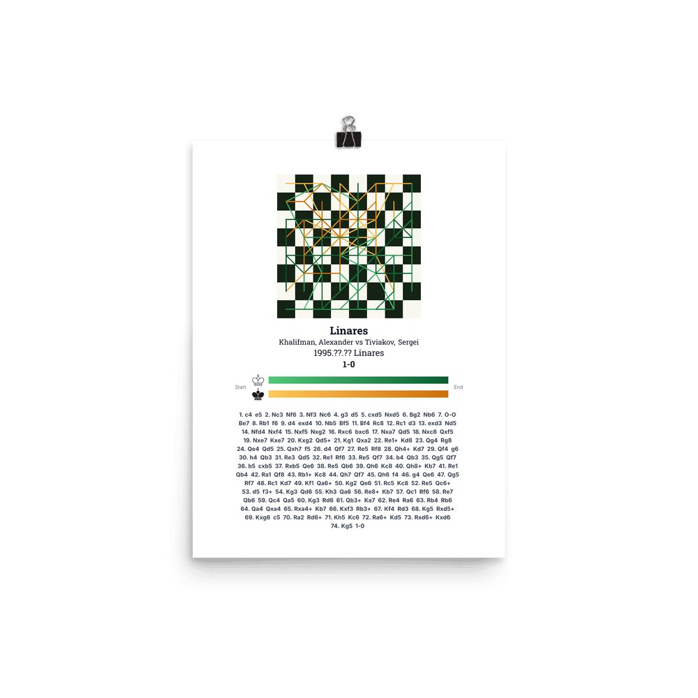 Museum-quality poster on thick, durable matte paper. A sharp, clean look for any chess visualisation.