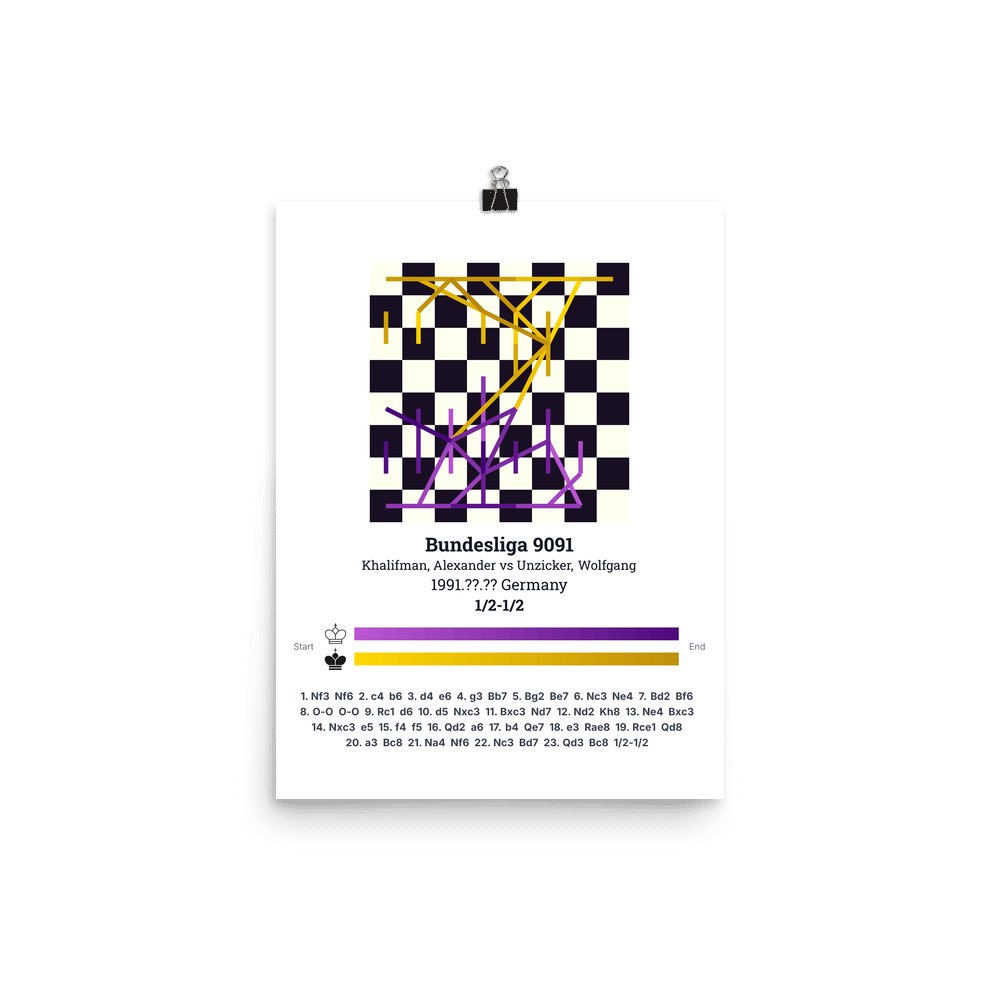 Museum-quality poster on thick, durable matte paper. A sharp, clean look for any chess visualisation.