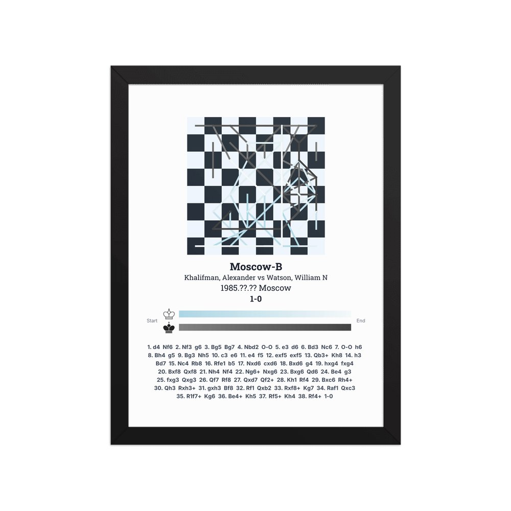 Museum-quality poster on thick, durable matte paper. A sharp, clean look for any chess visualisation.
