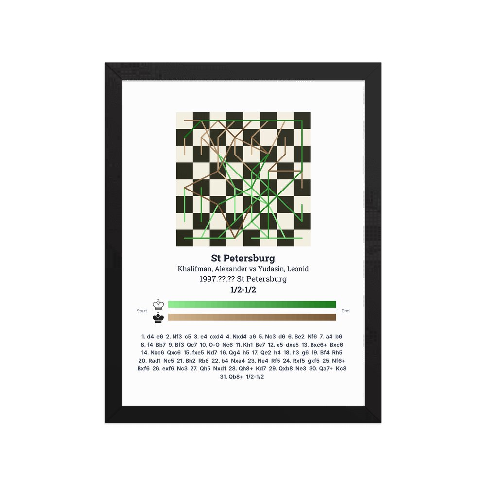 Museum-quality poster on thick, durable matte paper. A sharp, clean look for any chess visualisation.