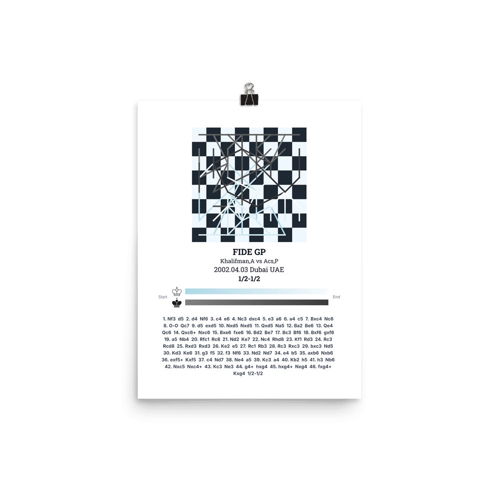 Museum-quality poster on thick, durable matte paper. A sharp, clean look for any chess visualisation.