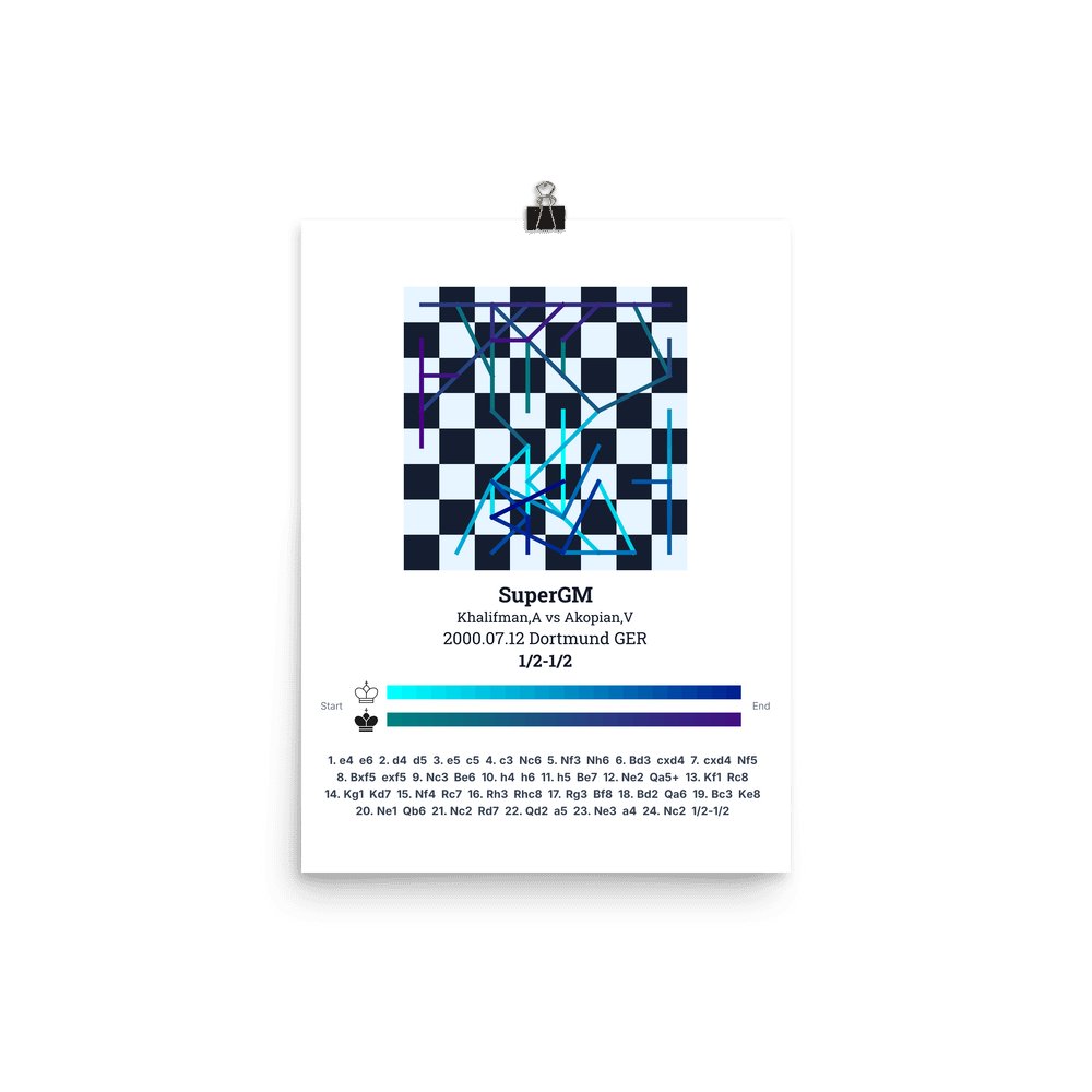 Museum-quality poster on thick, durable matte paper. A sharp, clean look for any chess visualisation.